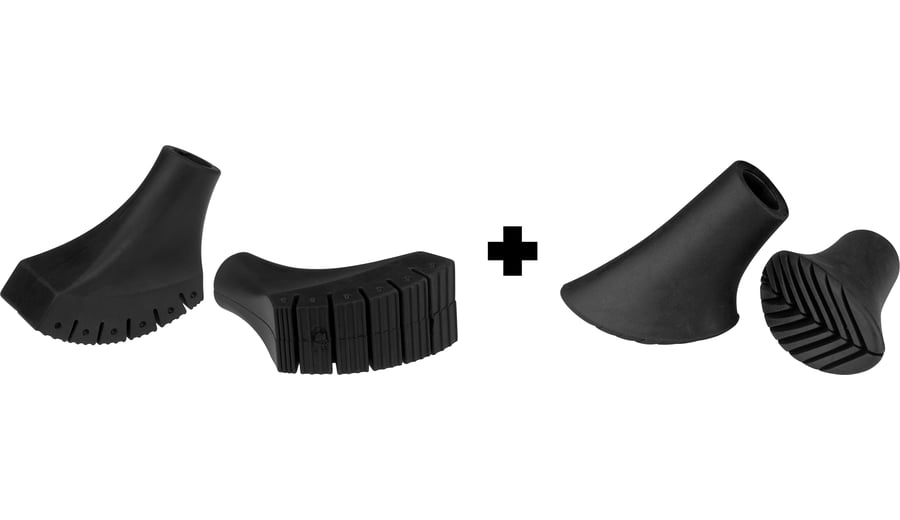 | Characteristics | • double pair, 1 set for soft terrain, 1 set for hard surfaces • inner diameter approx. 1.1 cm • spare TPR end caps for hiking poles • steel reinforcement on the inside • suitable for Abbey Camp Nordic Walking poles, but also for most other brands |