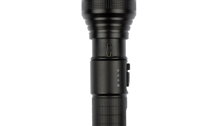 | Characteristics | • rechargeable flashlight via USB-C • 6 modes: high, medium, low, strobe, SOS, off • zoom function • charging time: approx. 4 hours • run time: approx. 6-8 hours (depending on mode) • LED: P60 • 1000 LUMEN • IP45 waterproof rating • includes rechargeable battery 3.7V/1800mAh (1x18650)(CE & ROHS compliant) • dimensions: 16.5 x 4.4 cm • weight: 210 grams |