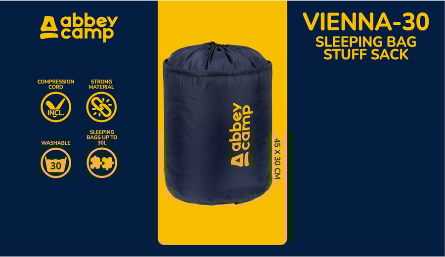 | Characteristics | • handy packing bag, which can be used to take your sleeping bag with you • the large size of 45 x 30 cm makes the bag suitable for most mummy and blanket model sleeping bags • extra strong ripstop material with water-repellent coating • with handy handle at the bottom • drawstring with stopper |
