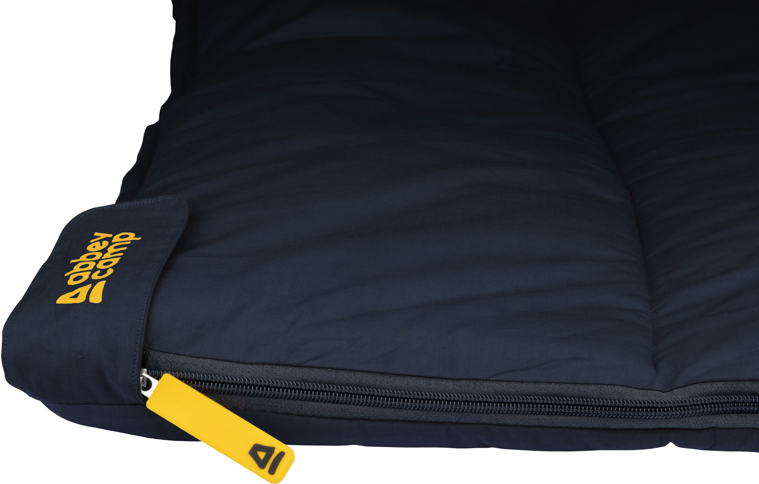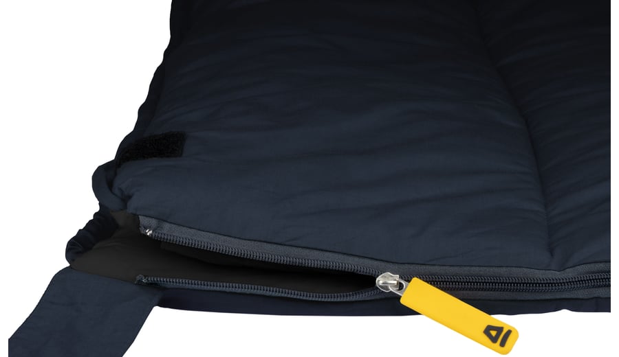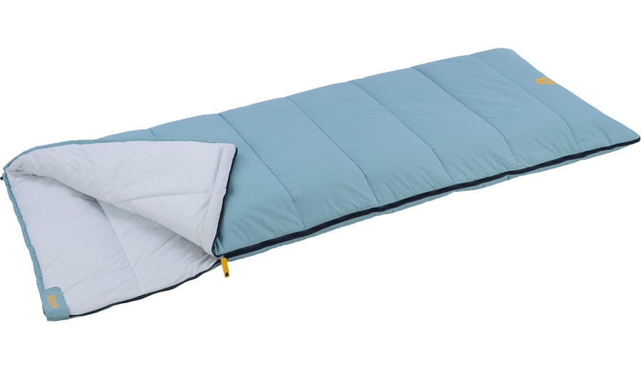 | Characteristics | • comfortable sleepingbag made of recycled and natural materials • water-repellent, PFC and PFAS free • blanket-shaped, can be twinned • moulding heat spray filling for extra insulation value • 2 sided, dividable polyamide zipper with underfly • comfort temperature approx. 8 degrees Celsius • extreme temperature approx. -10 degrees Celsius • dimensions approx. 210 x 80 cm • packed in a handy cotton carrying bag |