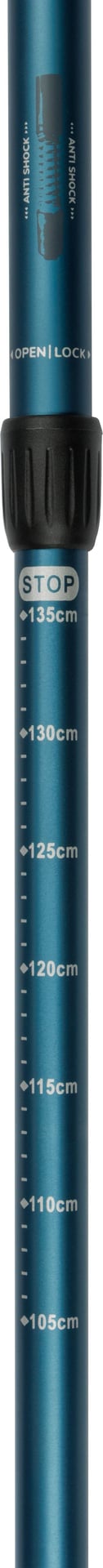 | Characteristics | • steel tip in rubber holder • rubber handgrip • PP wrist strap • rubber snow basket • 3-section collapsable hiking cane with rotation lock-system • length adjustable from 63 up to 135 cm • anti-shock suspension • anatomically-shaped handgrip with wristband • snow basket for extra grip in mud or snow |