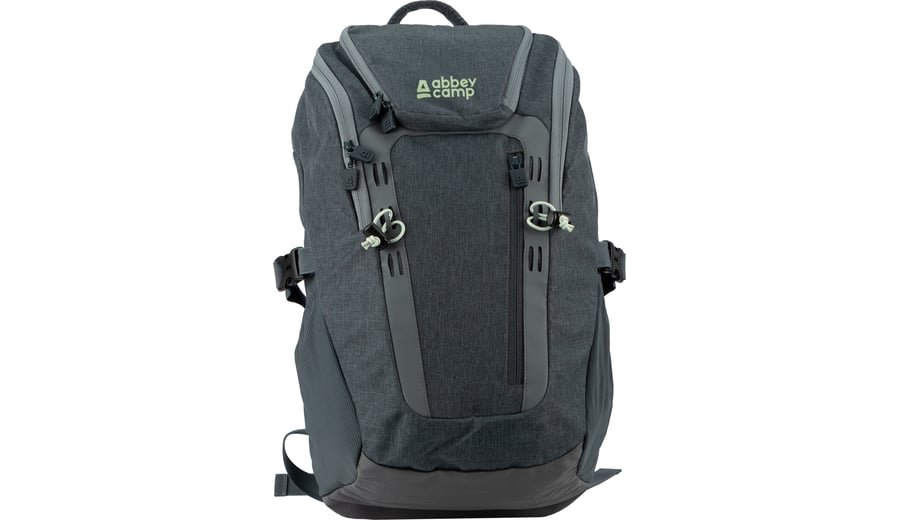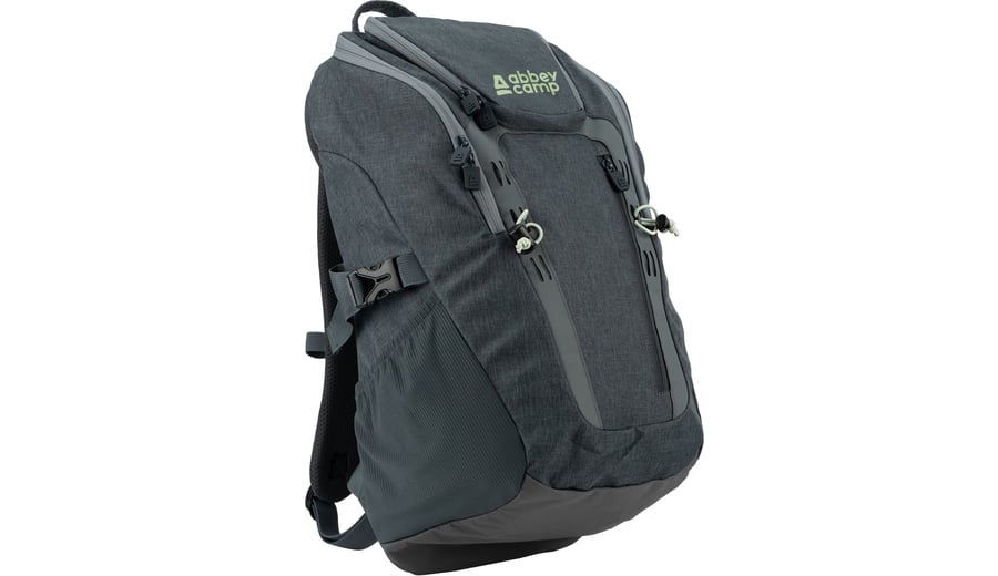 | Characteristics | • water-repellent 800 mm PU coating • ergonomic design with comfortable and ventilating padding for the shoulders and lower back • ventilated and adjustable shoulder straps • height-adjustable chest strap with clip • spacious main compartment with a 2-runners u-shaped zipper • compartment for a tablet and/or accessories • front compartment with 2-runners u-shaped zipper • front compartment with vertical zipper • elastic loops with stoppers for attaching accessories at multiple points • 2 stretchable polyester mesh side pockets with elastic bands for, for example, water bottles • top handle • dimensions approx. 49 x 32 x 10 cm • capacity: ca. 25 liters |