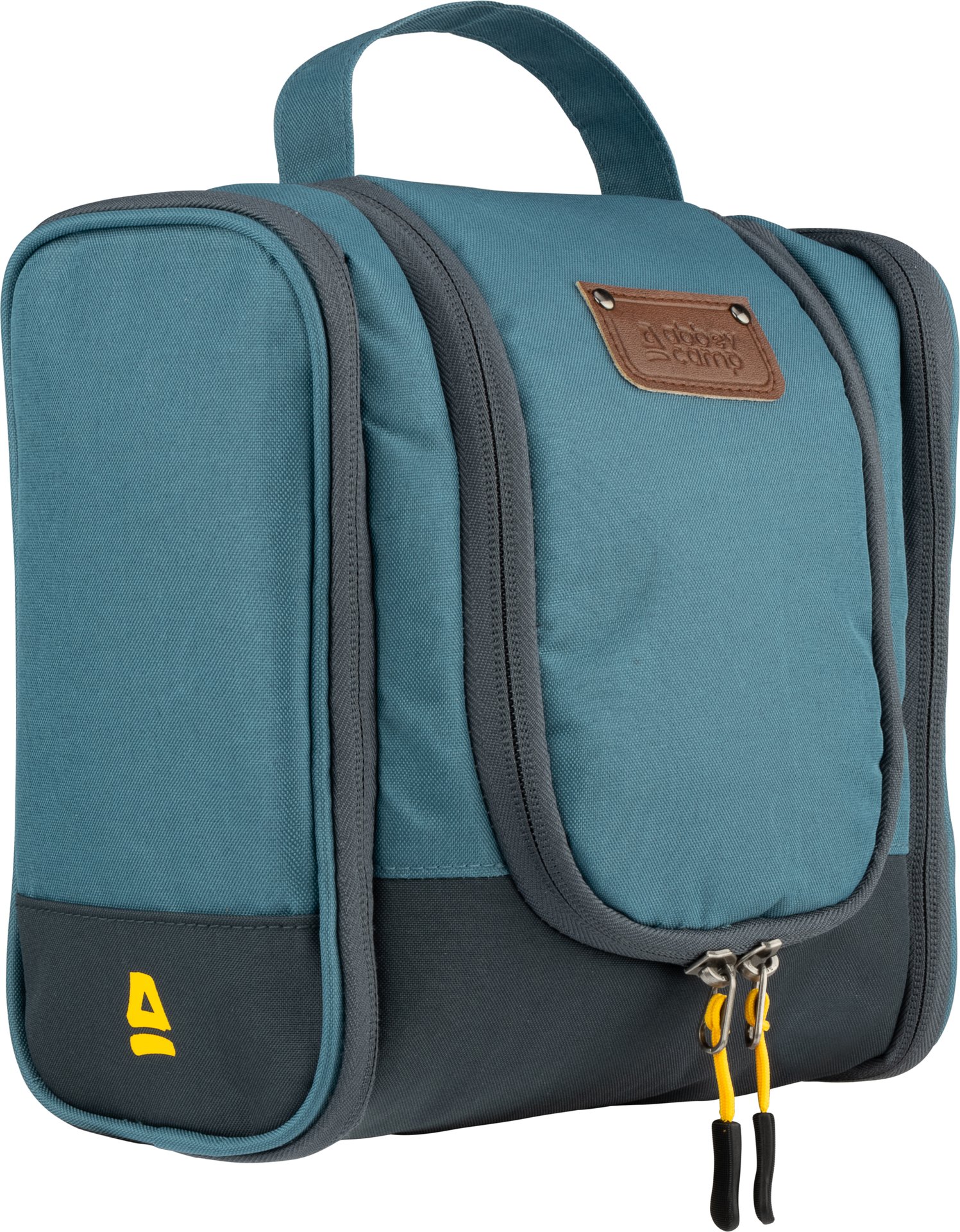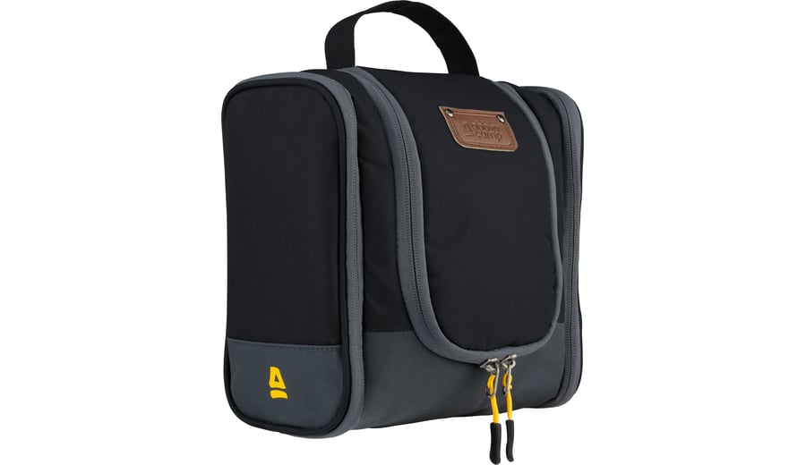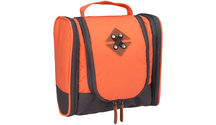 | Characteristics | • zippered main compartment • durable water-repellant material • two side pockets • small compartment with zipper inside the flap • inside is divided in mesh compartments • hook to hang the toiletry bag • handle on top • dimension approx. 20 x 10 x 18 cm |