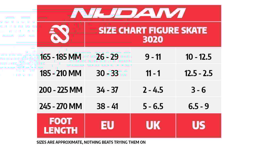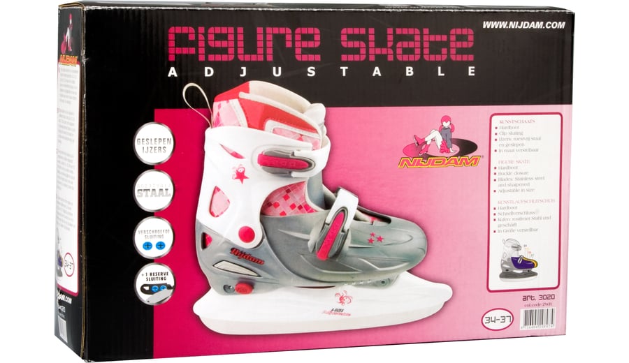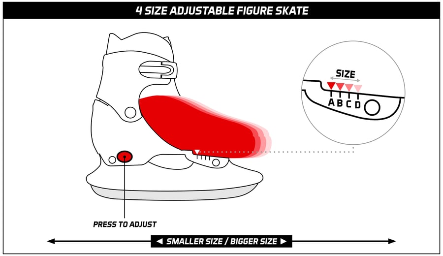 | Characteristics | • 3-section TPE preformed boot • adjustable in 4 sizes by pressing button at heel • 2x dual quick-lock • detachable inner boot made of polyamide with polyester lining • synthetic blade holder with stainless steel blades • not equipped with toe picks • blades have been pre-sharpened |