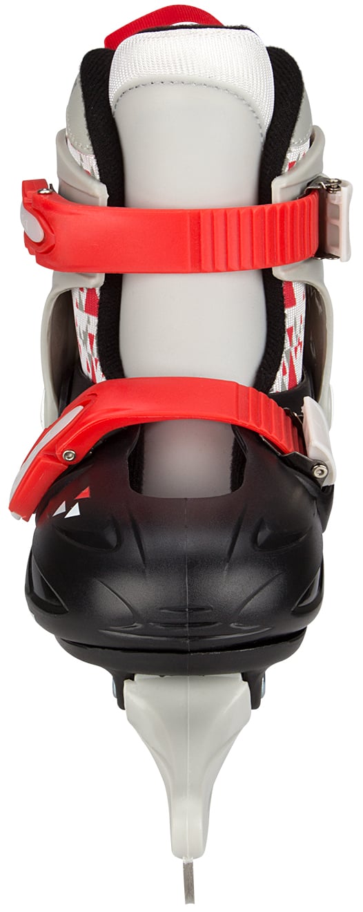 | Characteristics | • 3-section TPE preformed ice hockey boot • adjustable in 4 sizes by pressing button at heel • 2x dual quick-lock • detachable inner boot made of polyamide with polyester lining • synthetic blade holder with stainless steel ice hockey blades • blades have been pre-sharpened |