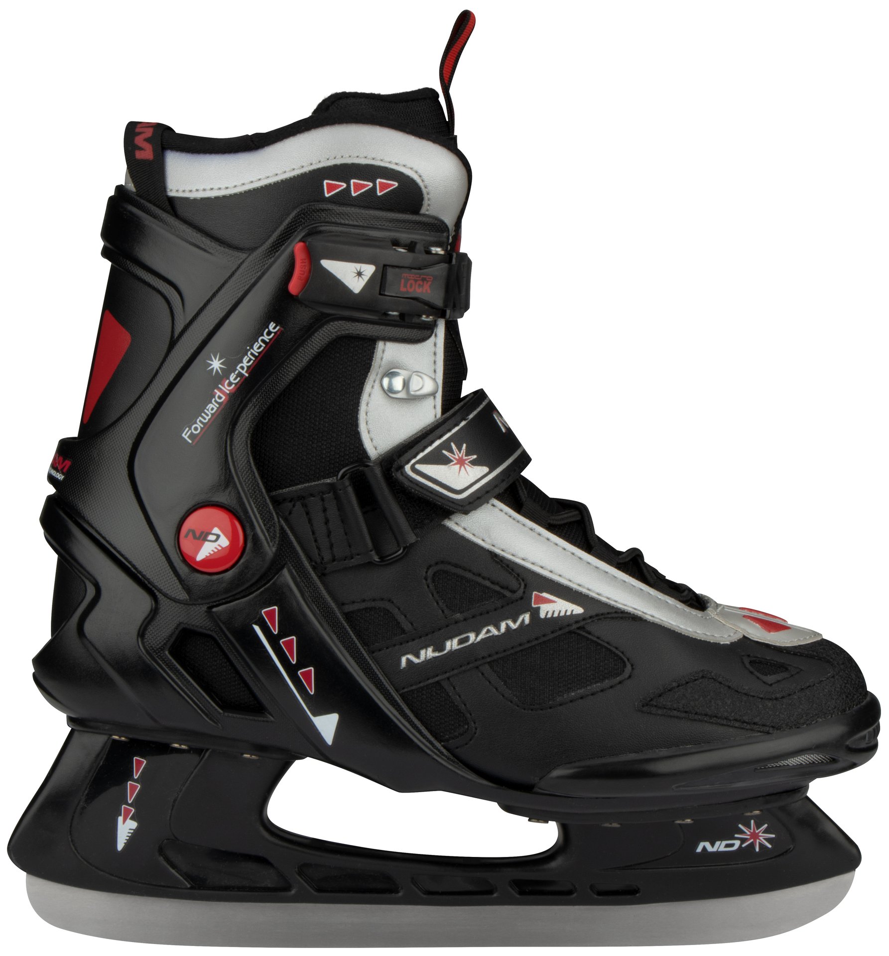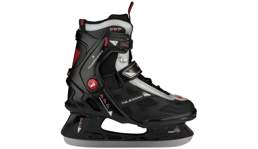 | Characteristics | • polyester mesh/PVC leather semisoft boot • dual quick-lock, easy to replace by screwed connection • lacing • instep strap with velcro tape • PE ankle-, heel- and toecap • riveted synthetic blade holder with stainless steel ice hockey blades • blades have been pre-sharpened |