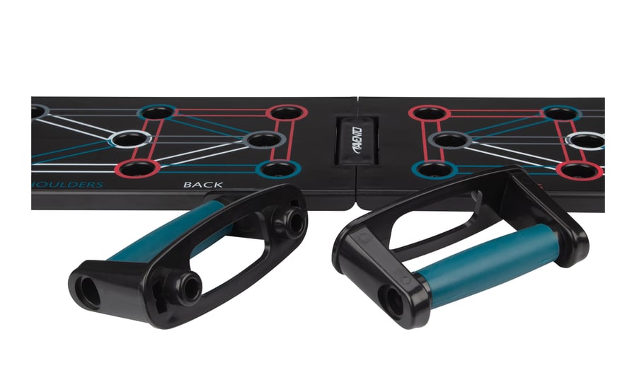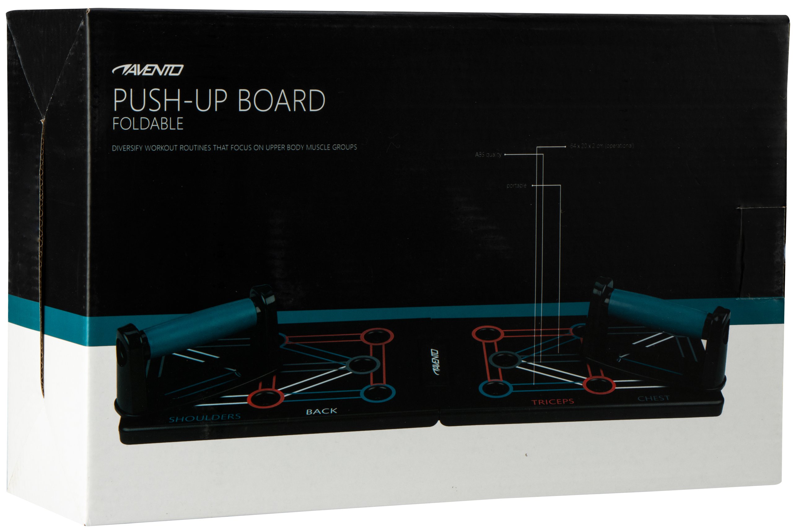 | Characteristics | • suitable for training of the whole upper body with just one device • portable and foldable - easy to store • base plate with 8 holes on both sides to set to 12 different exercises • dimensions during use: 64 x 20 x 2 cm • dimensions when folded: 32 x 20 x 4 cm • handgrip: height 8 cm, width (inner) 12.5 cm |