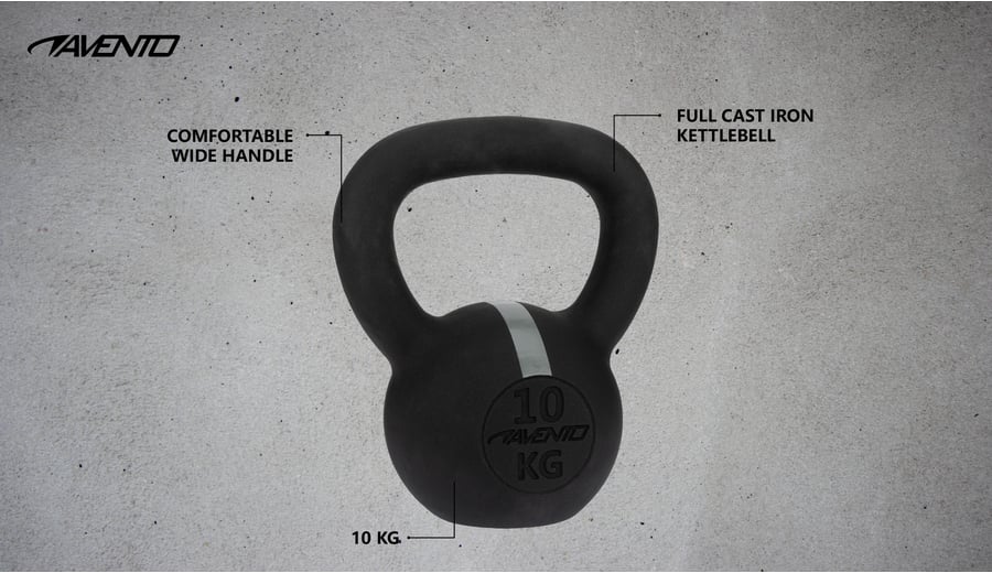 | Characteristics | • full cast iron kettlebell • round ball with flat bottom and wide ergonomic handle • easy to clean and store • coloured ring and embedded weight indication • weight approx. 10 kg |