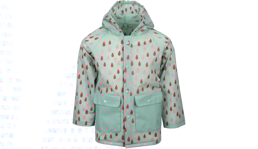 | Characteristics | • cheerful raincoat with a hood for children • 100% EVA material • 2,000 mm waterproof • welded seams • close with 4 snap closures • 2 waterproof pockets with snap closure |