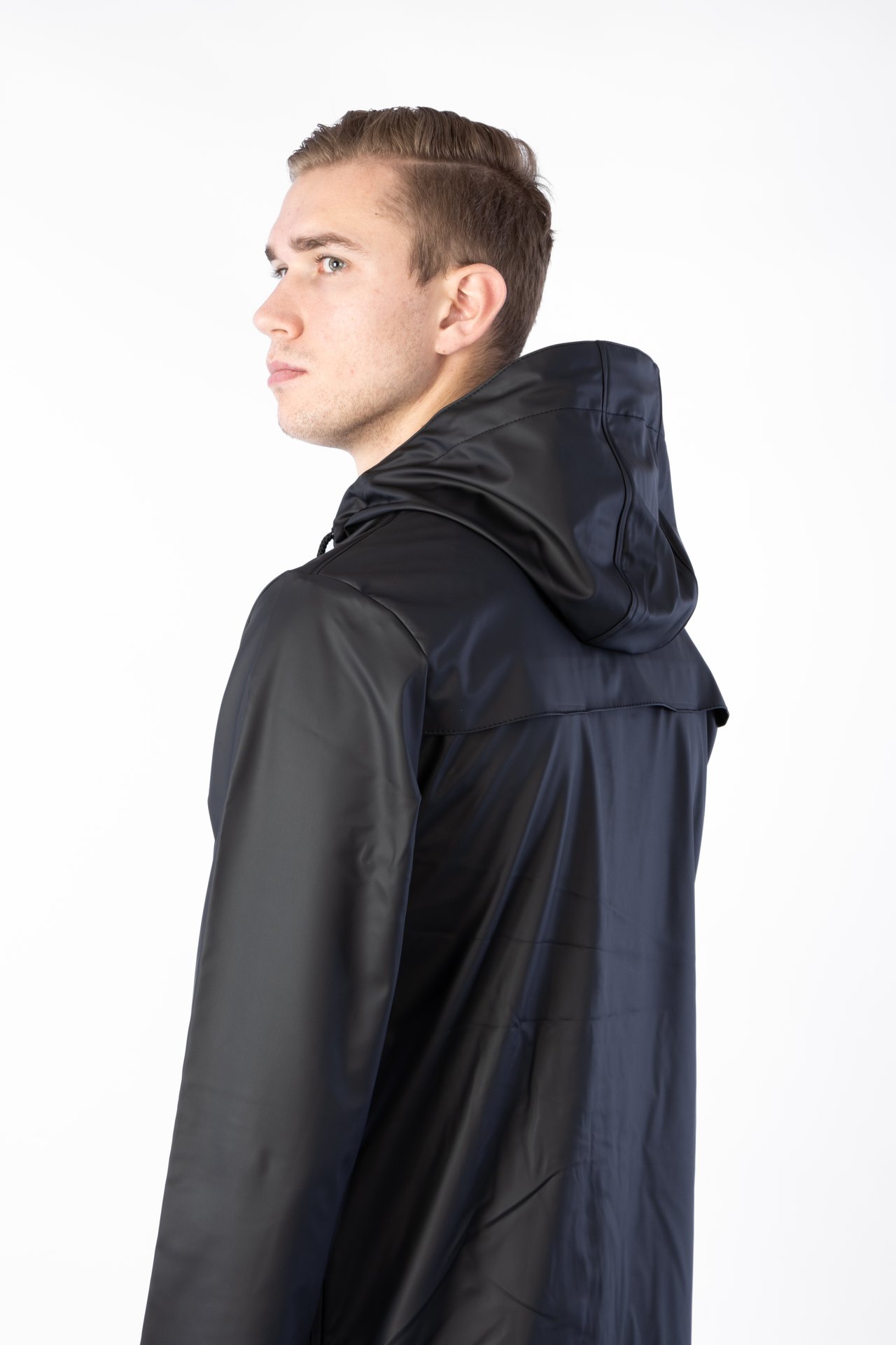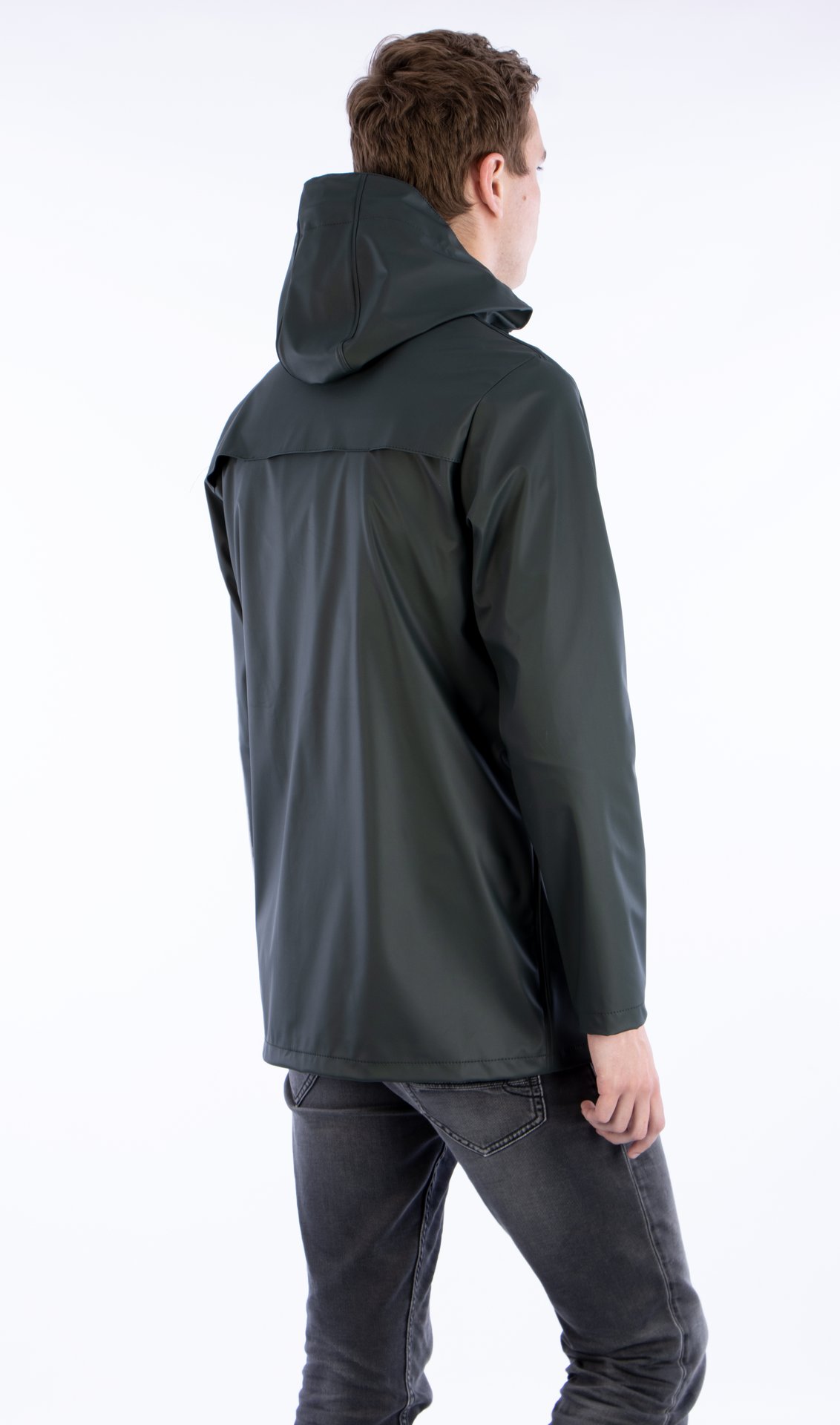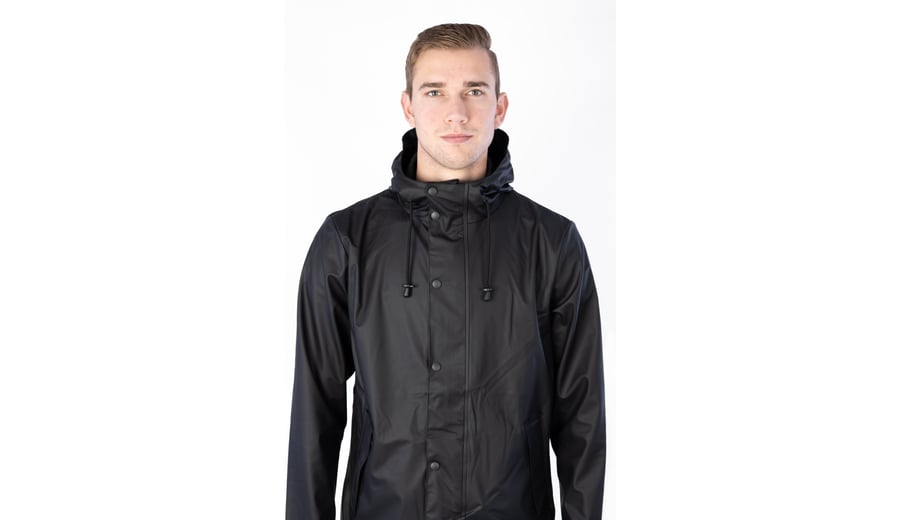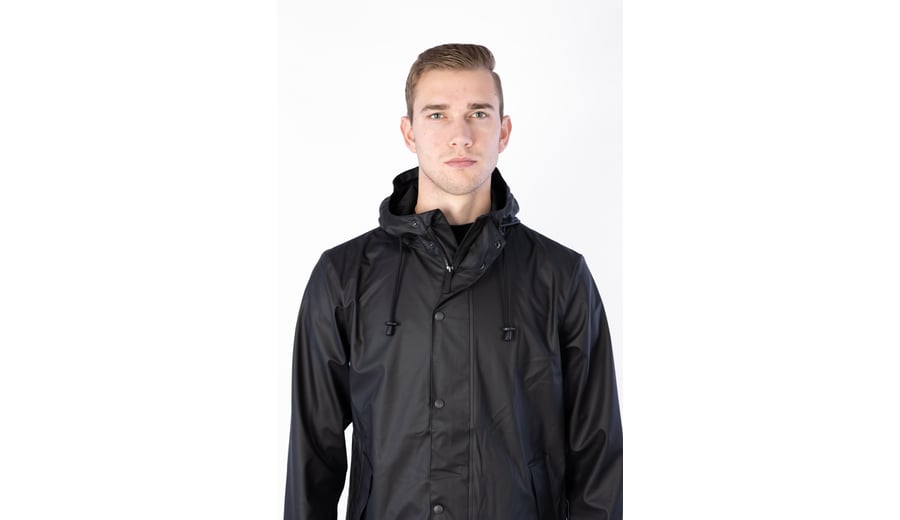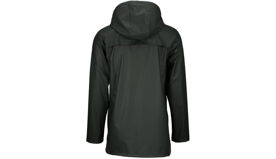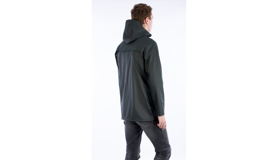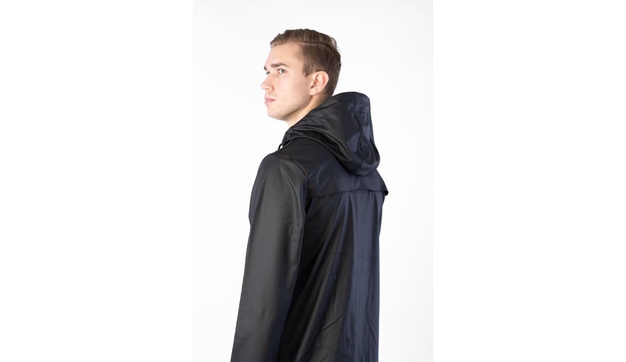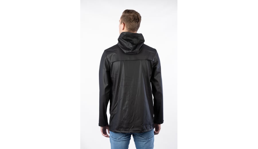 | Characteristics | • PU outside and polyester inside • 4000 mm waterproof • welded seams • covered ventilation openings on the back • full zipper with overfly and push buttons • hood with elastic cord • double zipper • slit pockets with overfly • windproof • weight approx. 190 gr/m² • polyester lining |