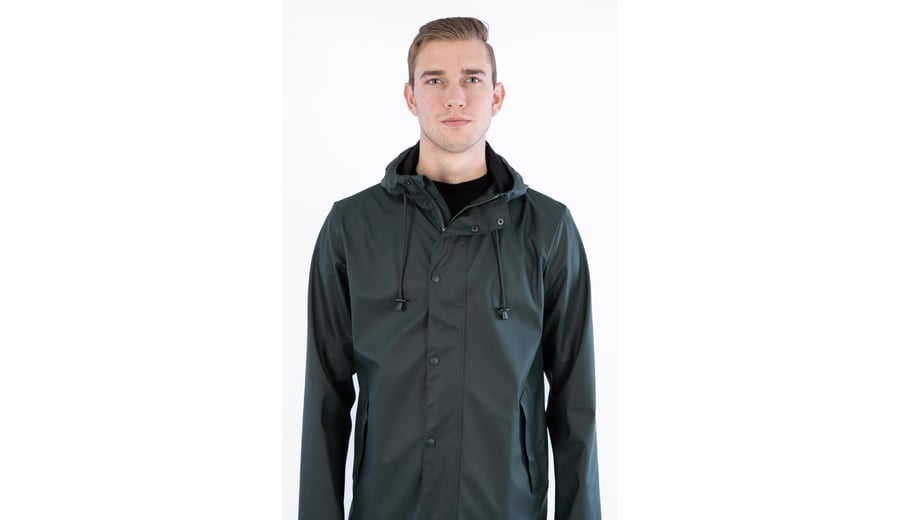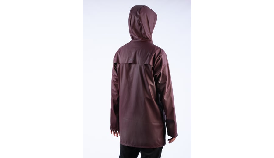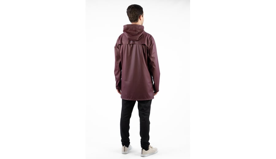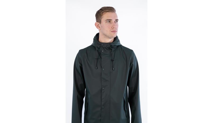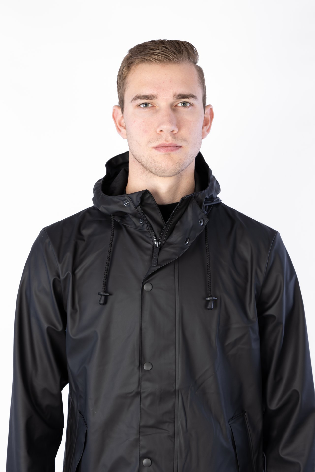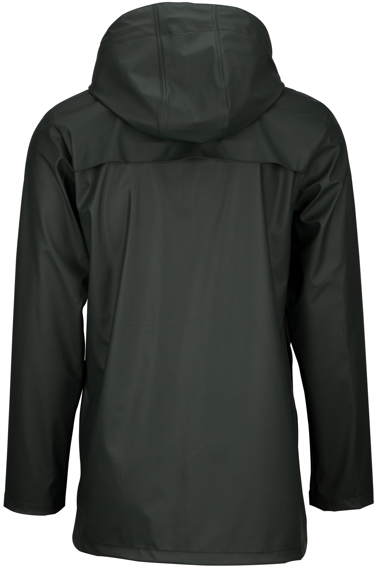 | Characteristics | • PU outside and polyester inside • 4000 mm waterproof • welded seams • covered ventilation openings on the back • full zipper with overfly and push buttons • hood with elastic cord • double zipper • slit pockets with overfly • windproof • weight approx. 190 gr/m² • polyester lining |