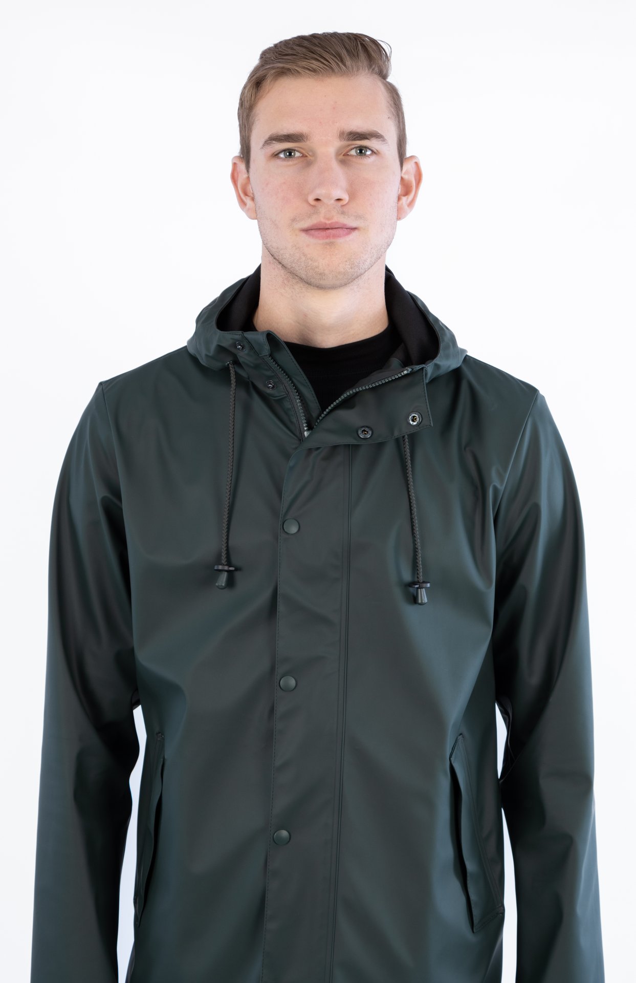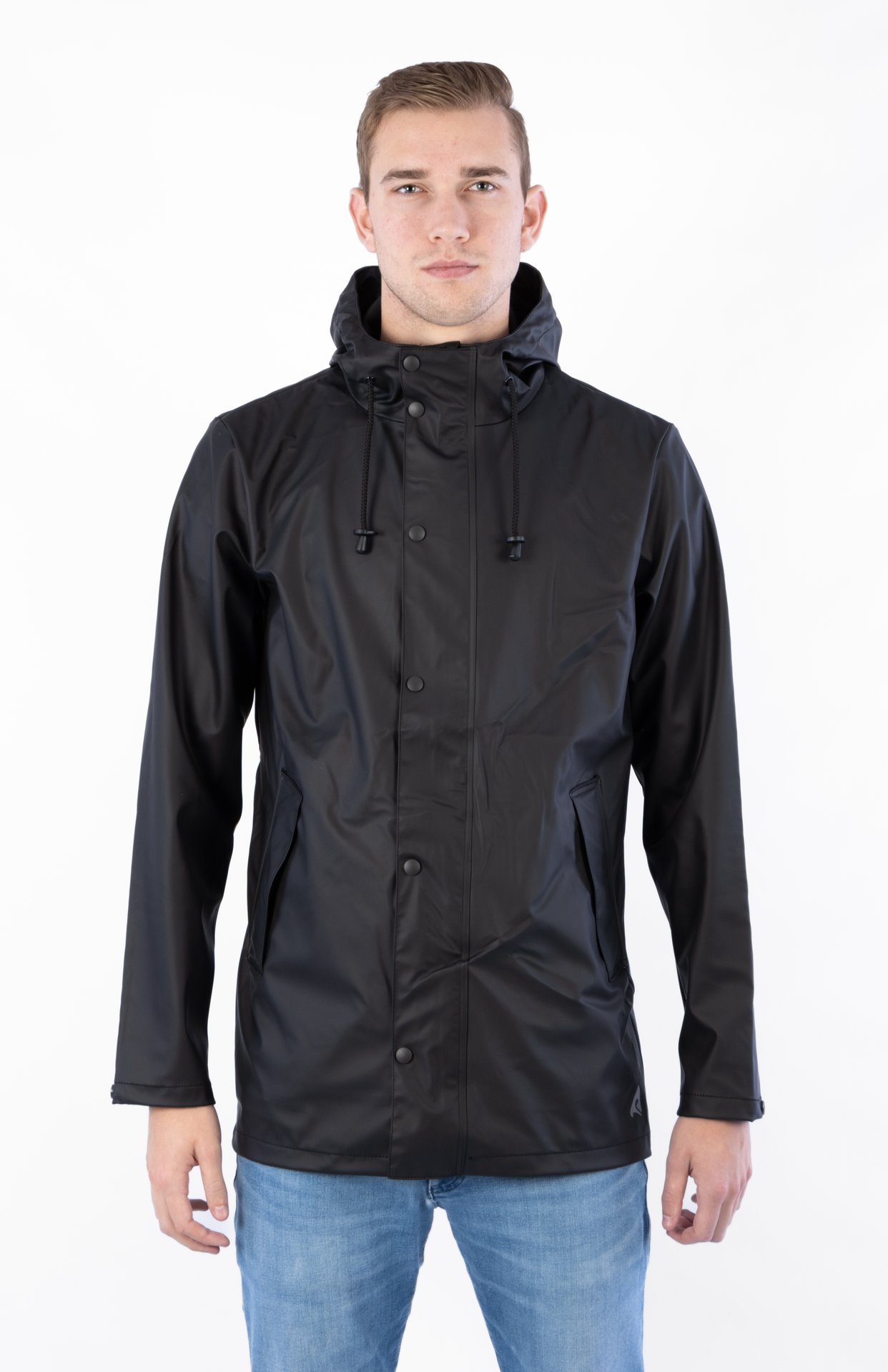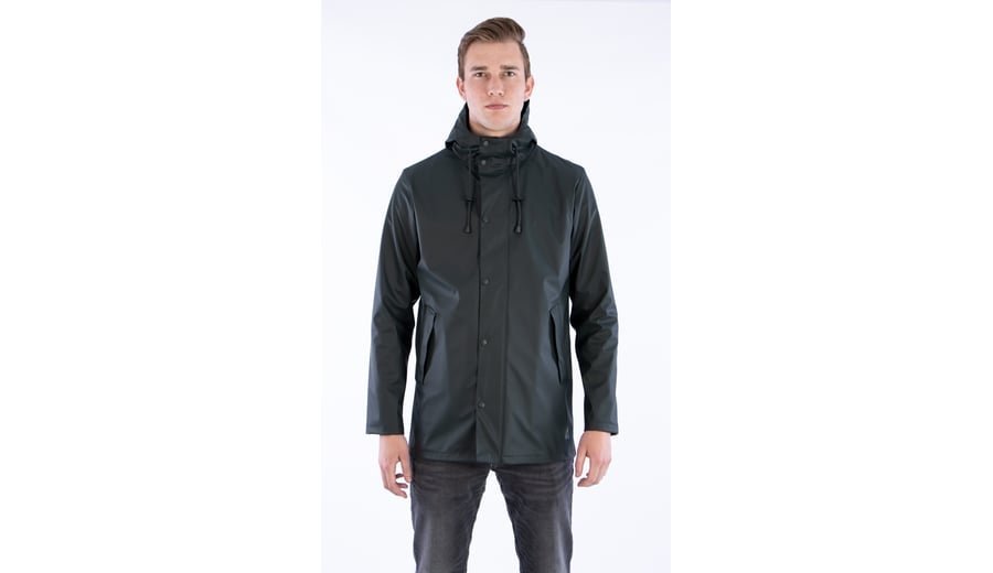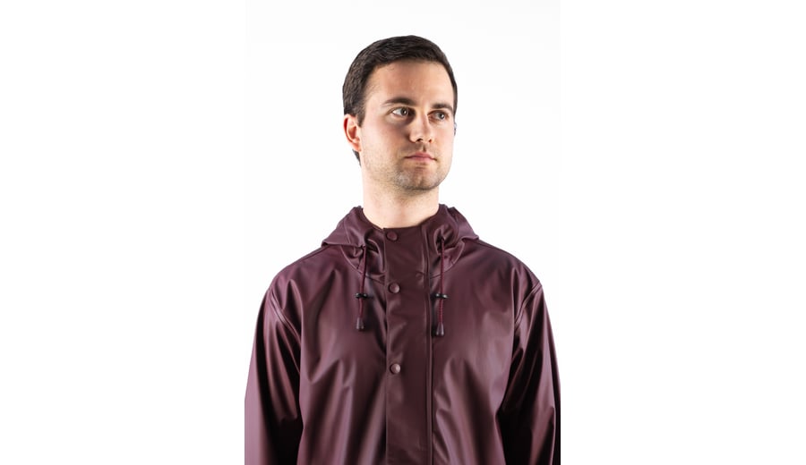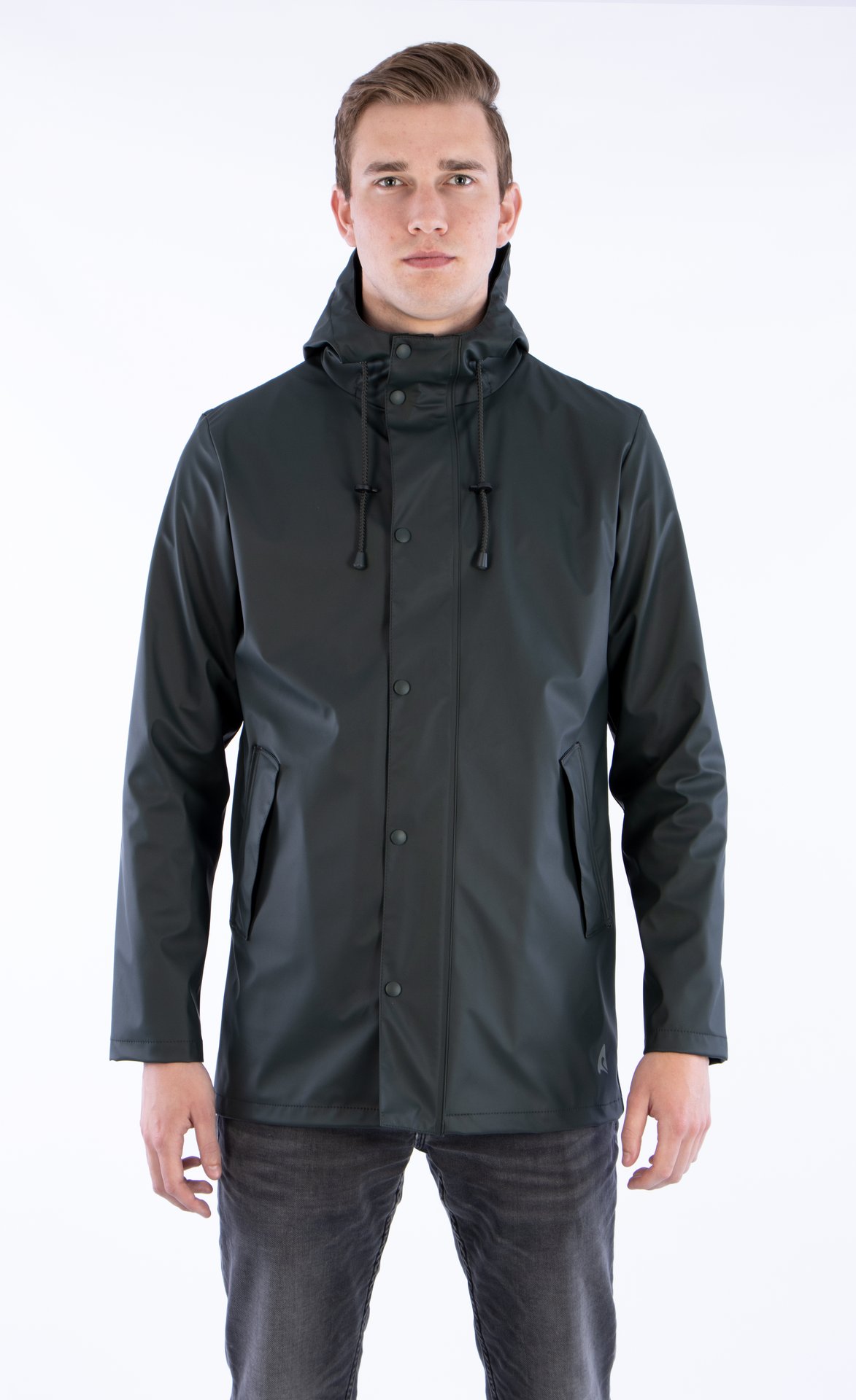 | Characteristics | • PU outside and polyester inside • 4000 mm waterproof • welded seams • covered ventilation openings on the back • full zipper with overfly and push buttons • hood with elastic cord • double zipper • slit pockets with overfly • windproof • weight approx. 190 gr/m² • polyester lining |