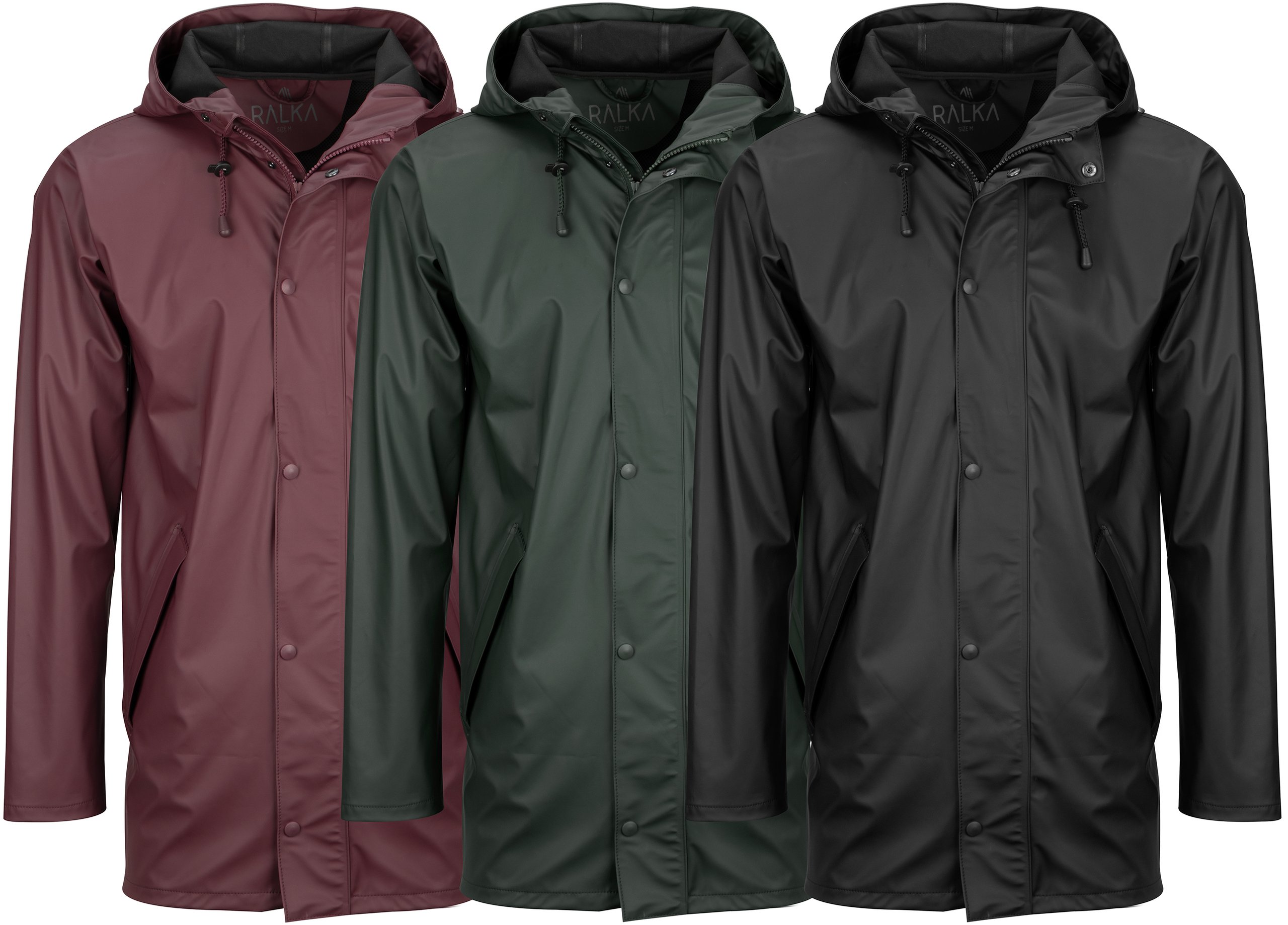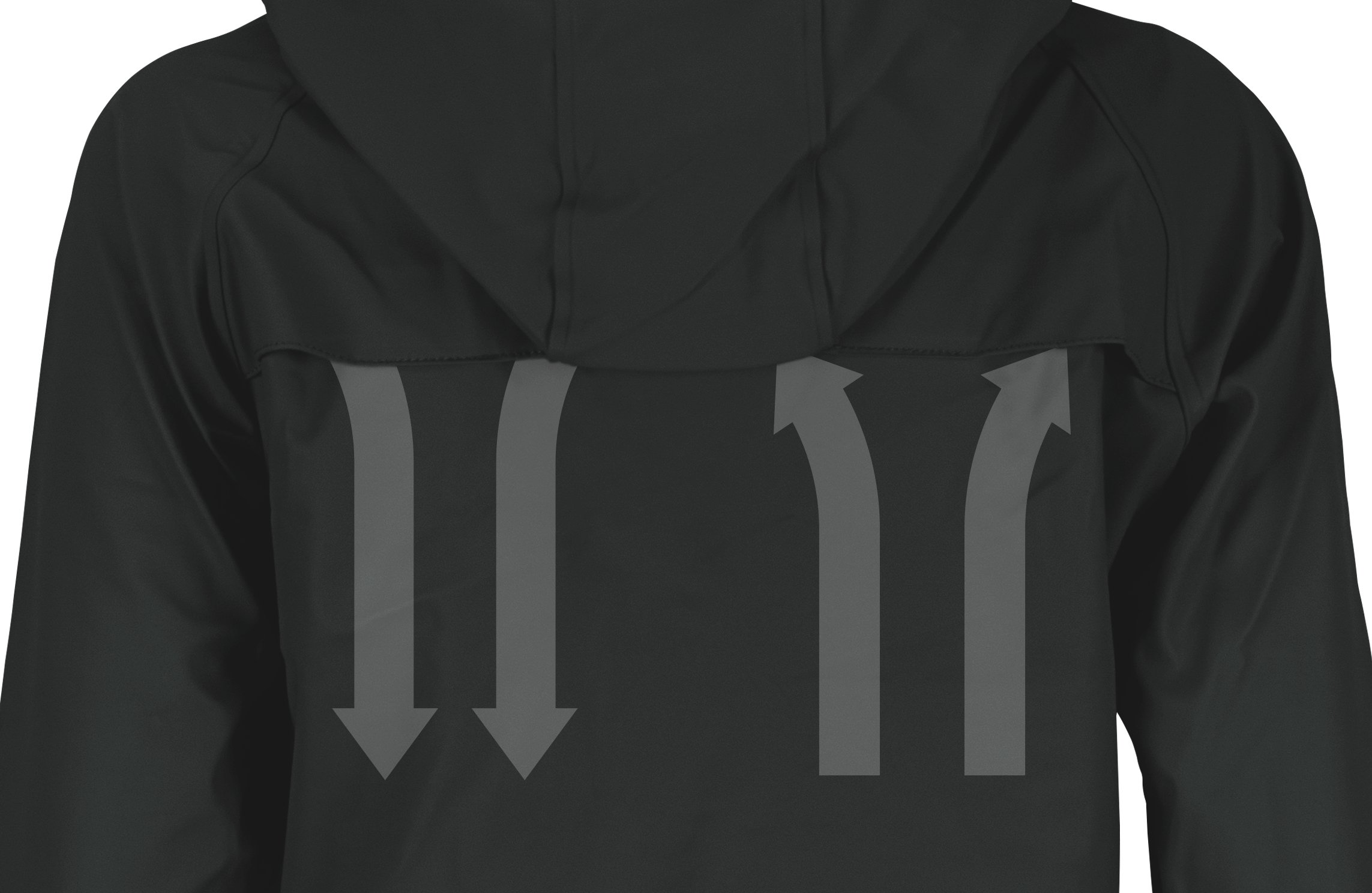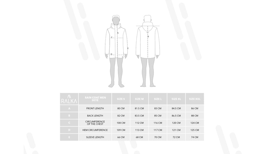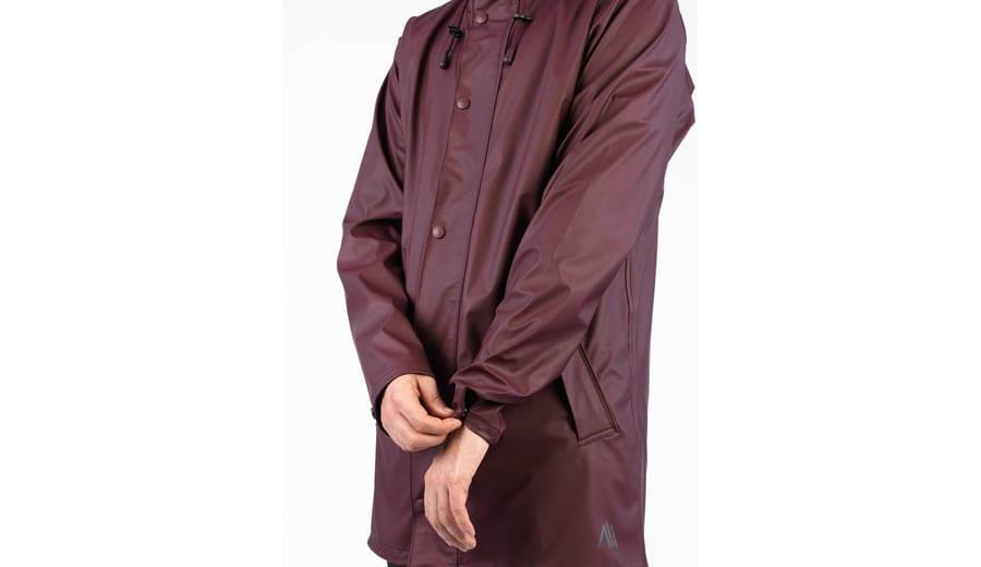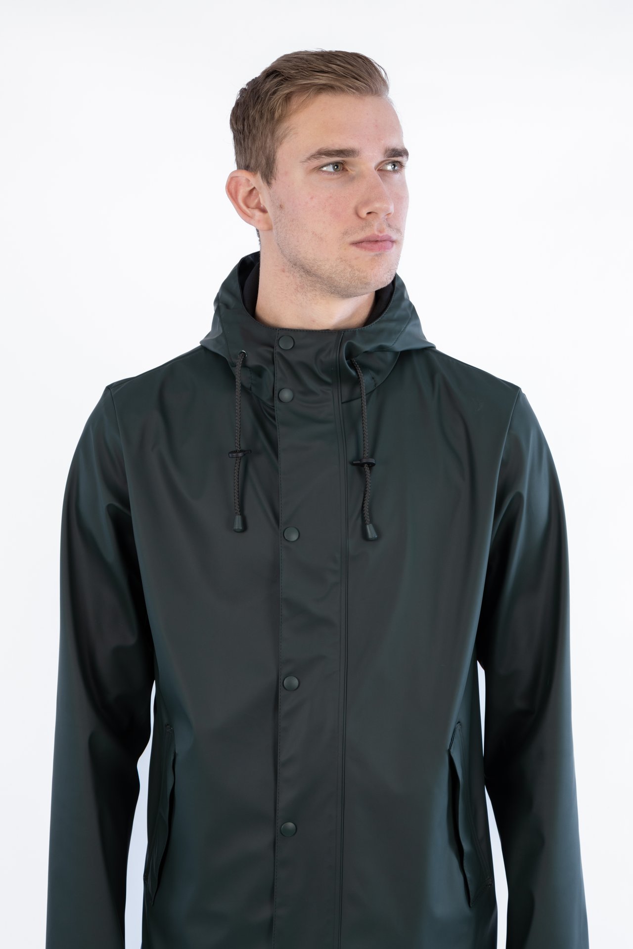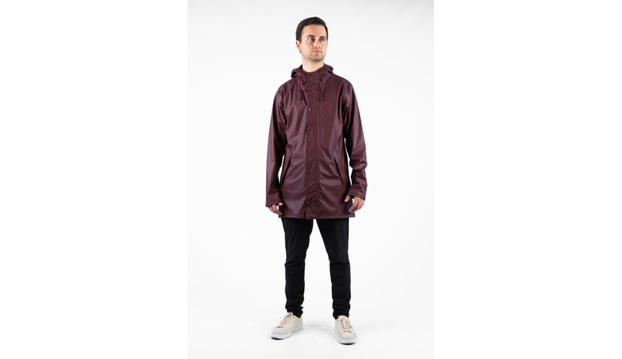 | Characteristics | • PU outside and polyester inside • 4000 mm waterproof • welded seams • covered ventilation openings on the back • full zipper with overfly and push buttons • hood with elastic cord • double zipper • slit pockets with overfly • windproof • weight approx. 190 gr/m² • polyester lining |