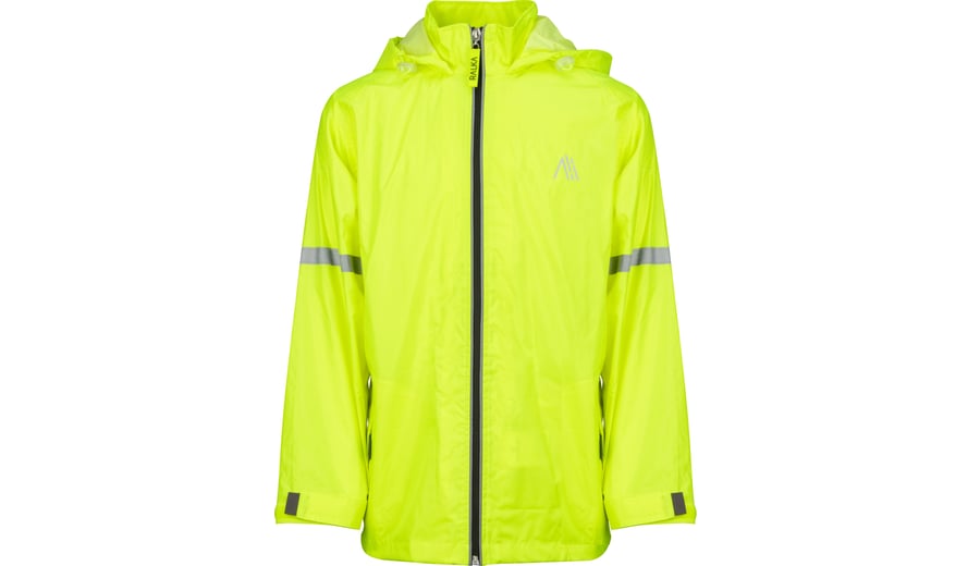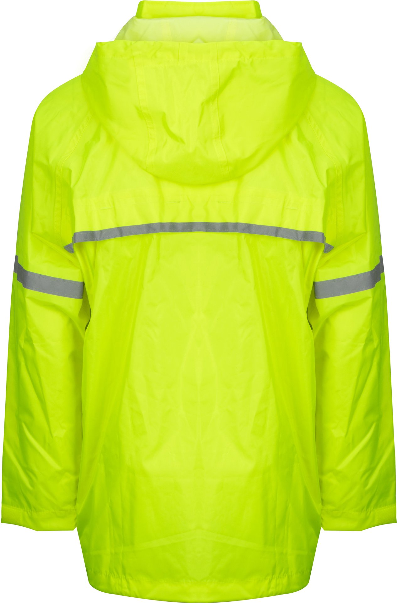 | Characteristics | • waterproof raincoat (5,000 mm) with a PVC coating for children • with taped seams and a waterproof reflective zipper • with strategically positioned reflective stripes for extra visibility • hood in the collar with elastic cord with stoppers • cuffs with velcro • side pockets with rain flap and velcro • ventilation openings on the back with flap |