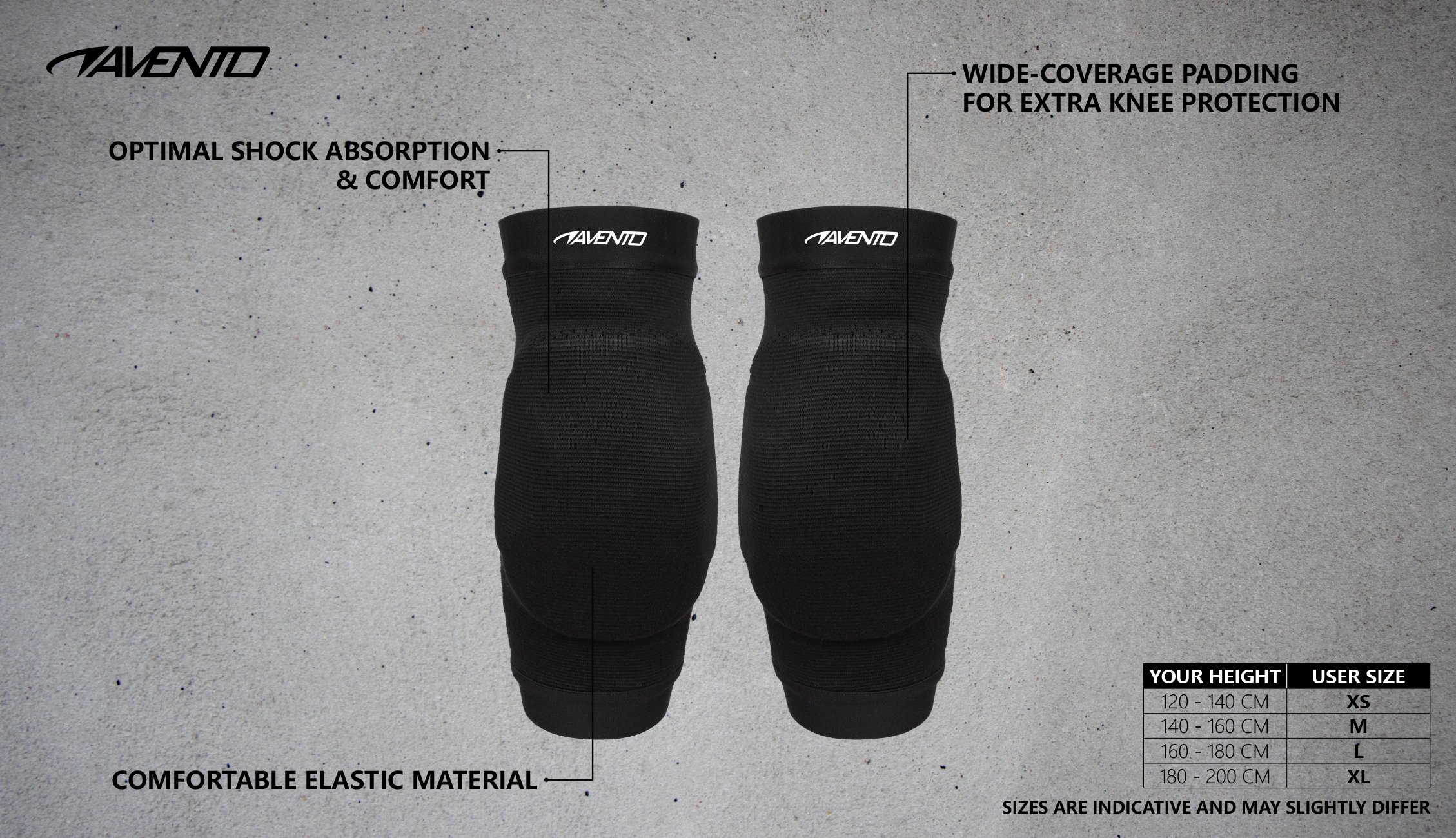 | Characteristics | • comfortable volleyball knee pads made of 60% polyester, 22% polyamide, and 18% elastane • anatomically shaped soft EVA foam padding (12mm) for extra shock absorption and comfort • elastic band at the top and bottom for a secure fit • available in 4 sizes (S/M/L/XL) • machine washable (30 °C) • CE certified |