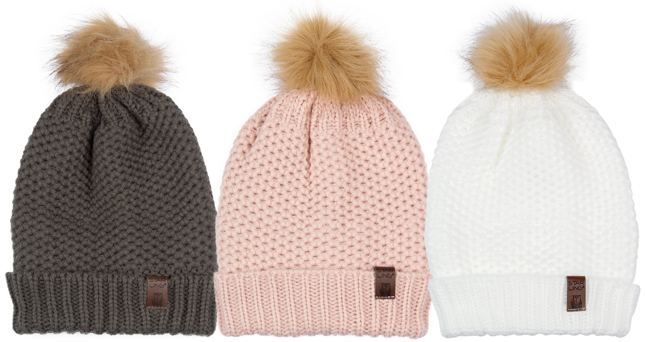 | Characteristics | • knitted in spider pattern • wide ribbed brim • fleece lining • pom-pom on top made of imitation fur |