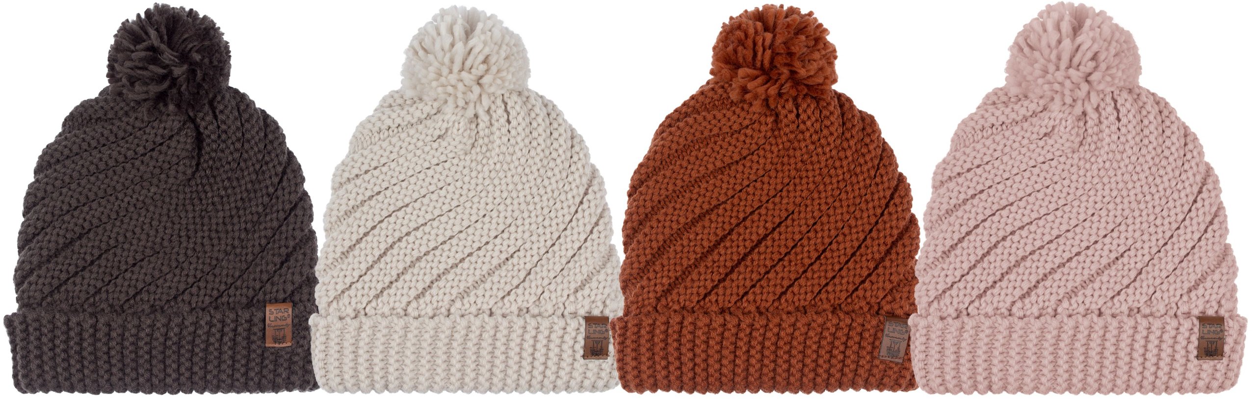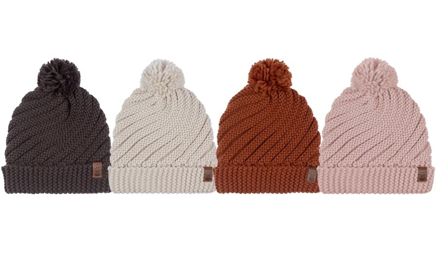 | Characteristics | • oversized model • knitted in diagonal rib pattern • wide ribbed brim • pom-pom on top • fleece lining • width approx. 22 cm |