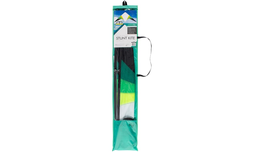 | Characteristics | • delta-shaped kite • polyamide ripstop cover • 4 mm fibreglass frame • 2 round plastic reels • 2x 40 meter braided polyester kite rope • tractive force 45 kg • for wind speeds from 2 to 5 beaufort • dimensions 140 x 60 cm |