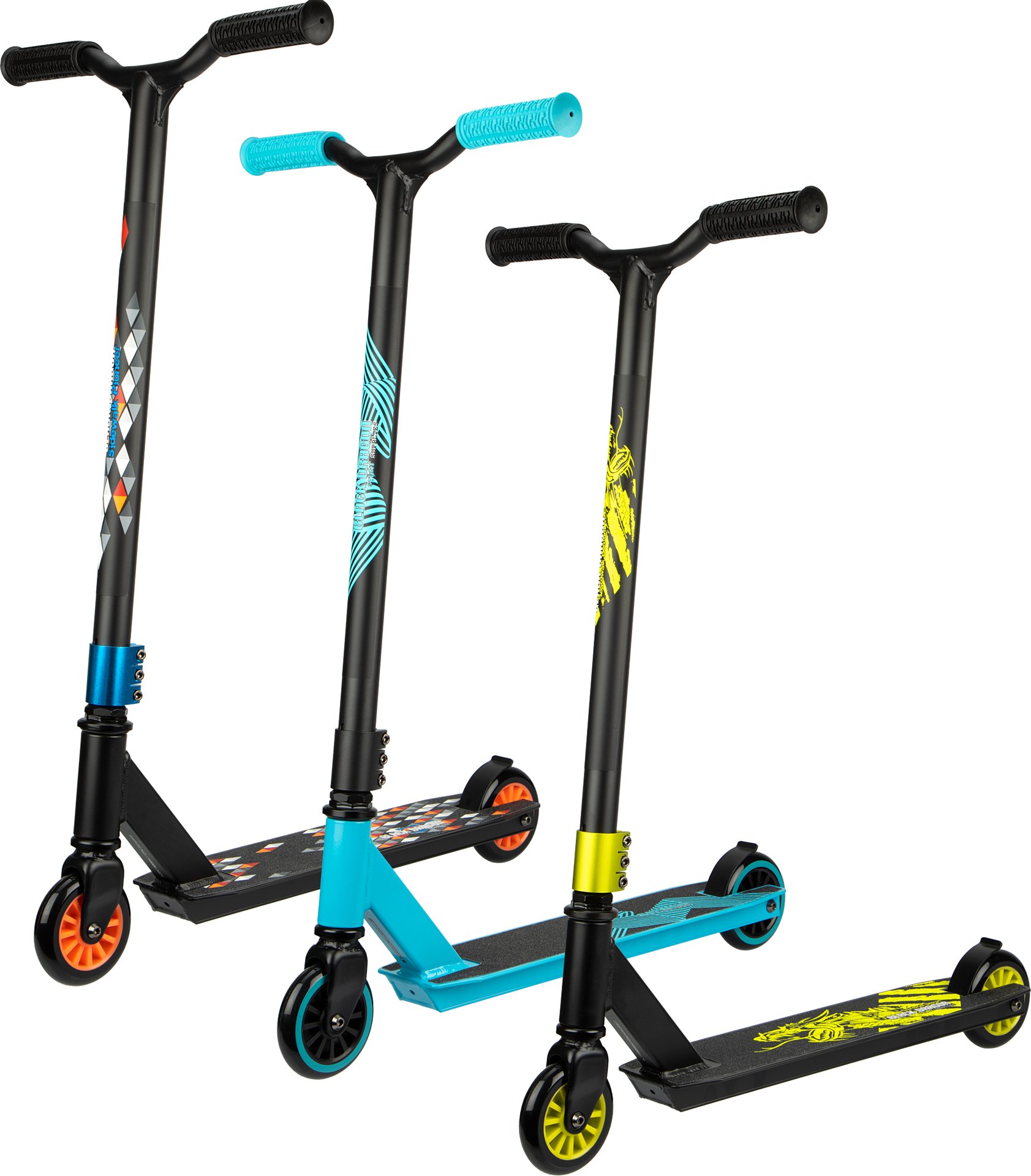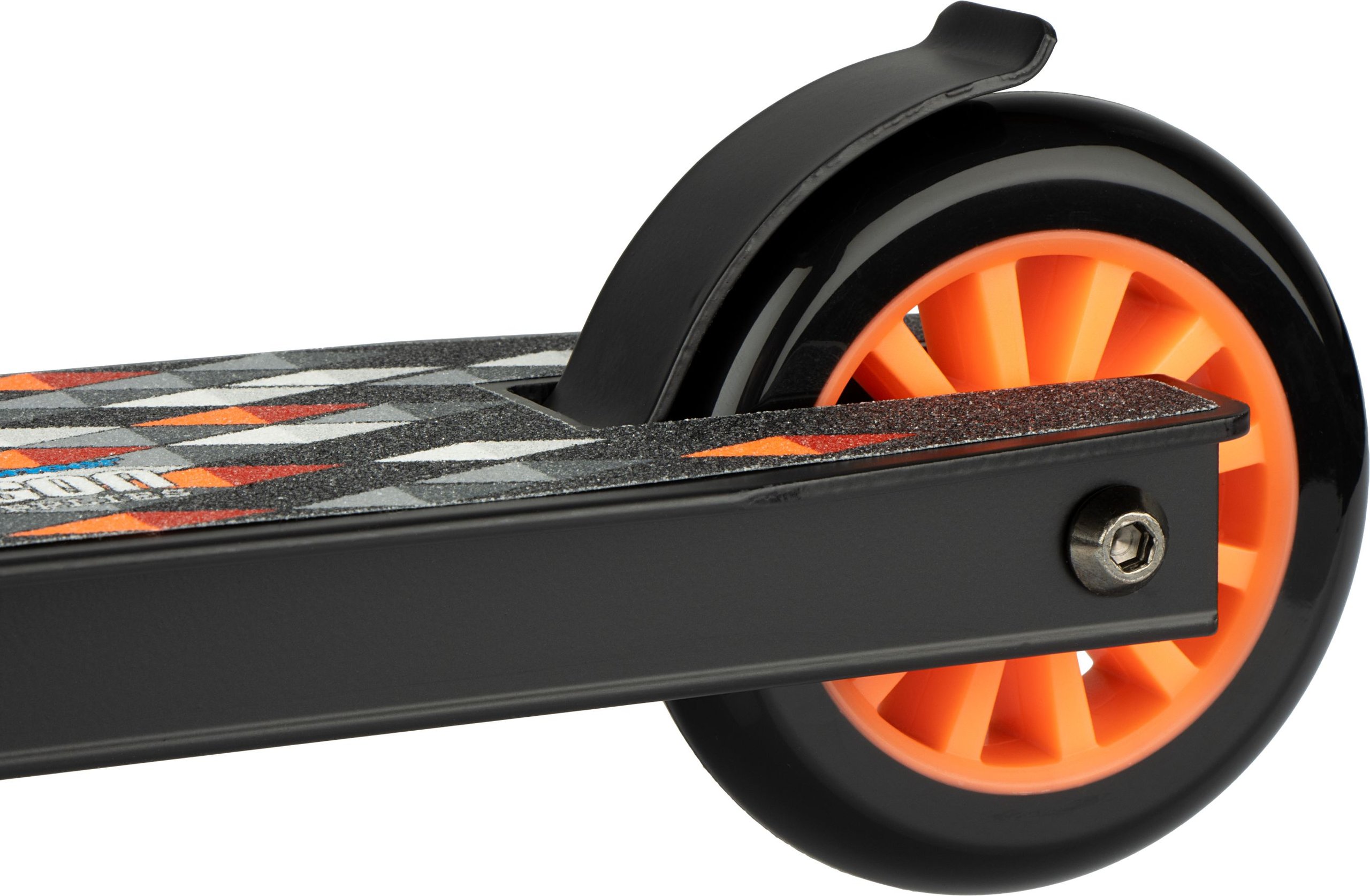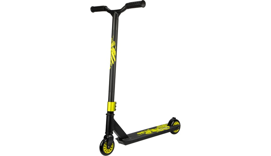 | Characteristics | • aluminium/ heavy-duty steel frame • strong rectangular frame construction • aluminium deck with griptape • rubber handgrips with impact protection • ABEC 7 bearings • 85A PU spoked wheels, dimensions 100 x 24 mm • non-foldable/detachable handlebar • triple fixation collar • steel rear footbrake • width handlebar 44 cm • hight handlebar 83 cm, not adjustable • dimensions deck 48 x 10.5 cm • weight approx. 4.0 kg • maximum load 100 kg |