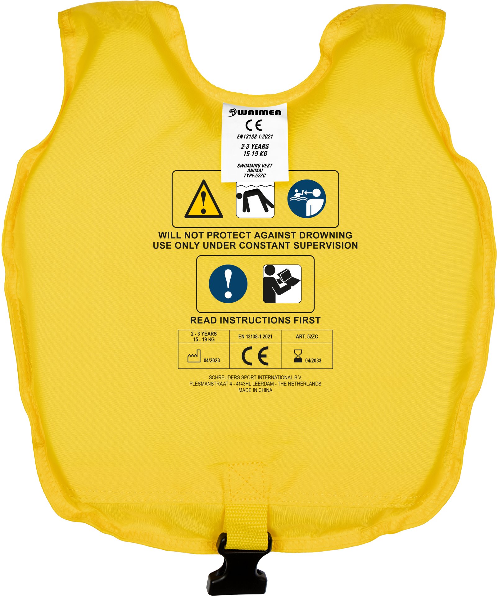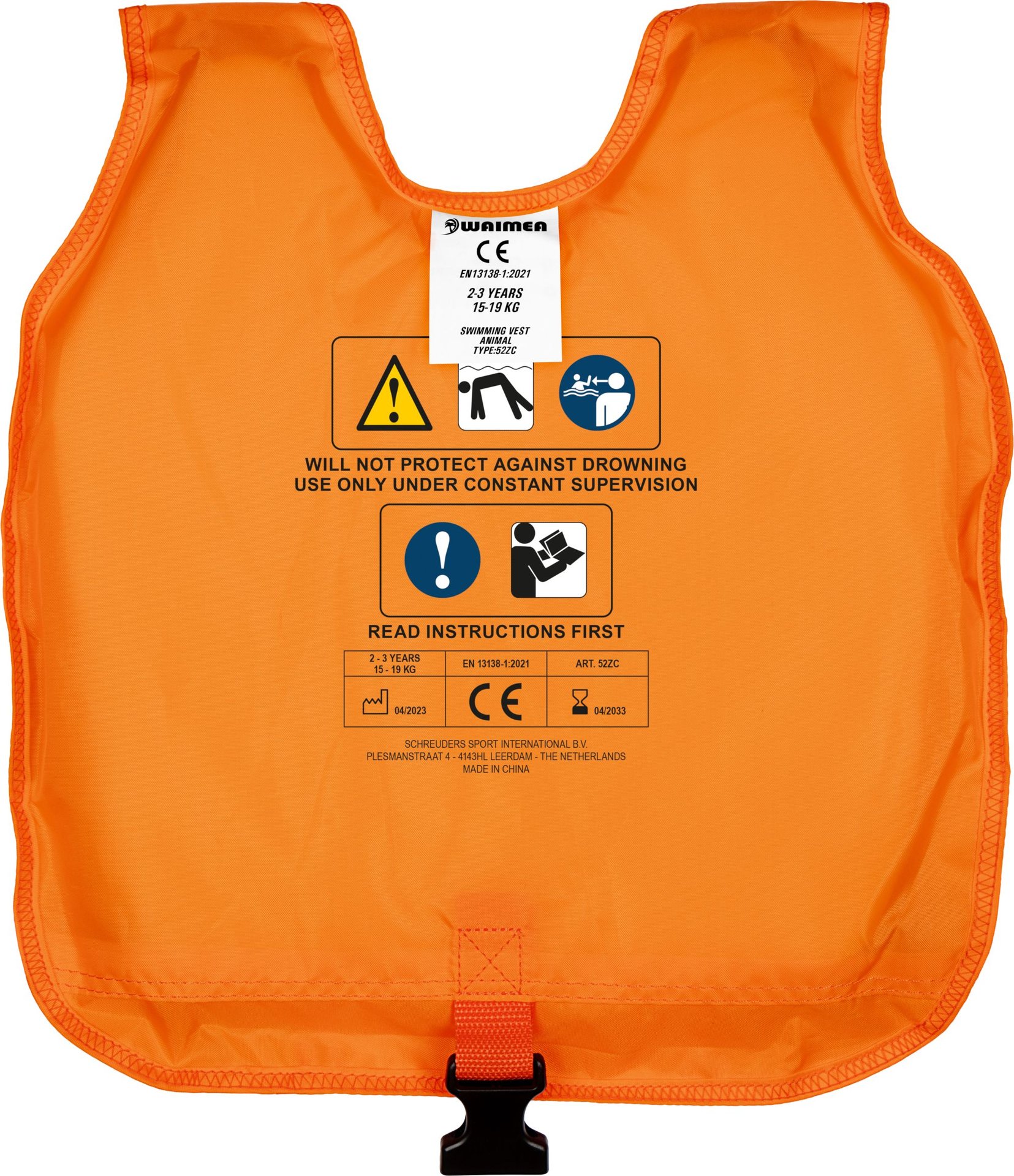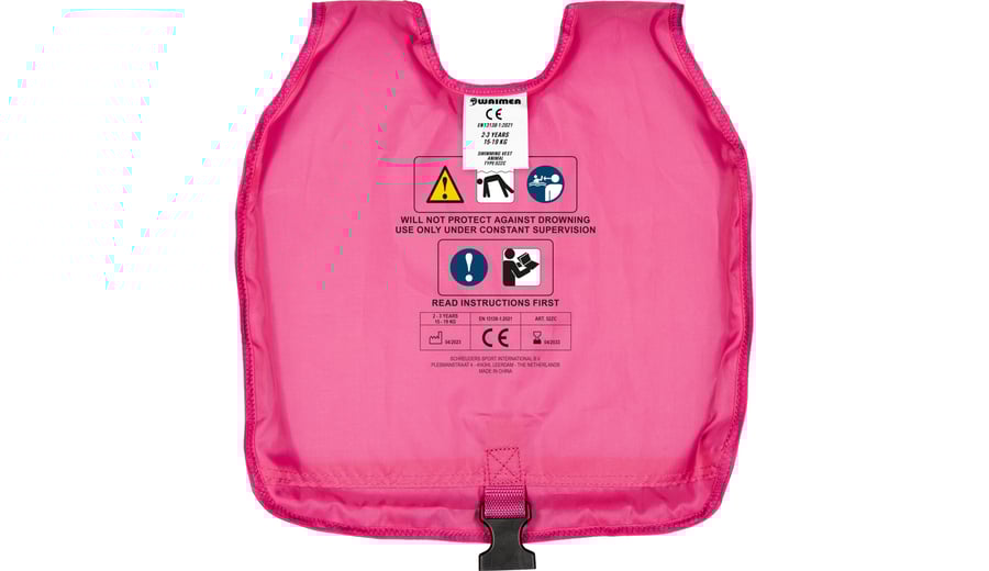 | Characteristics | • adjustable swimming vest by means of quick-lock safety buckles • adjustable PP strap between the legs with safe quick-lock safety buckle • polyester with polyethylene filling • CE approved in accordance with EN 13138–1:2021 + AC:2022 • not a life saving device |