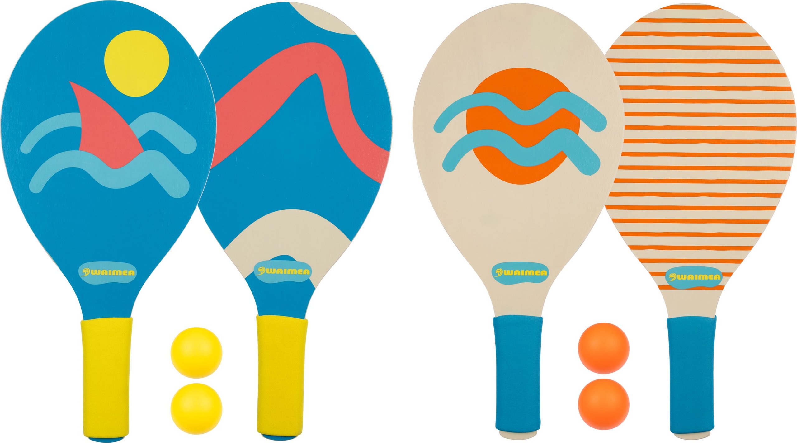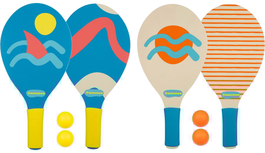 | Characteristics | • 2 beach paddles, thickness approx. 0.8 cm • 2 TPR balls, diameter approx. 38 mm • foam grip, thickness approx. 8 mm • dimensions of beach paddle approx. 38 x 18 cm |