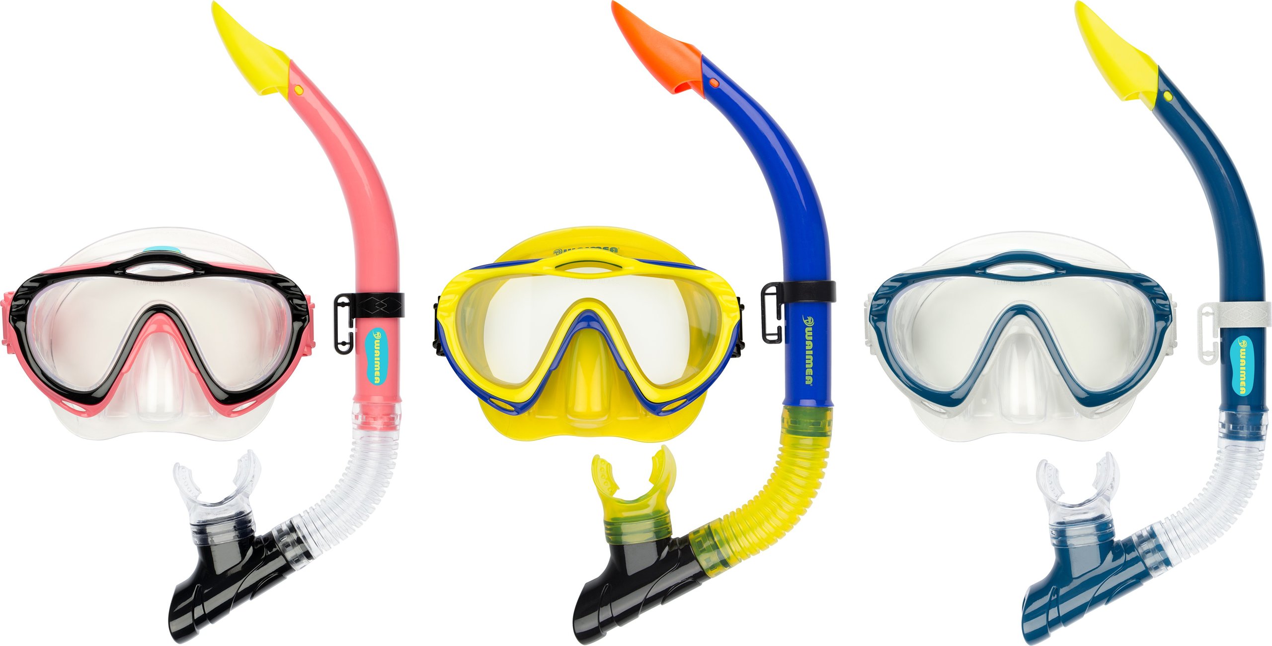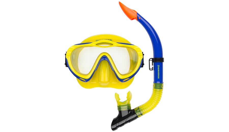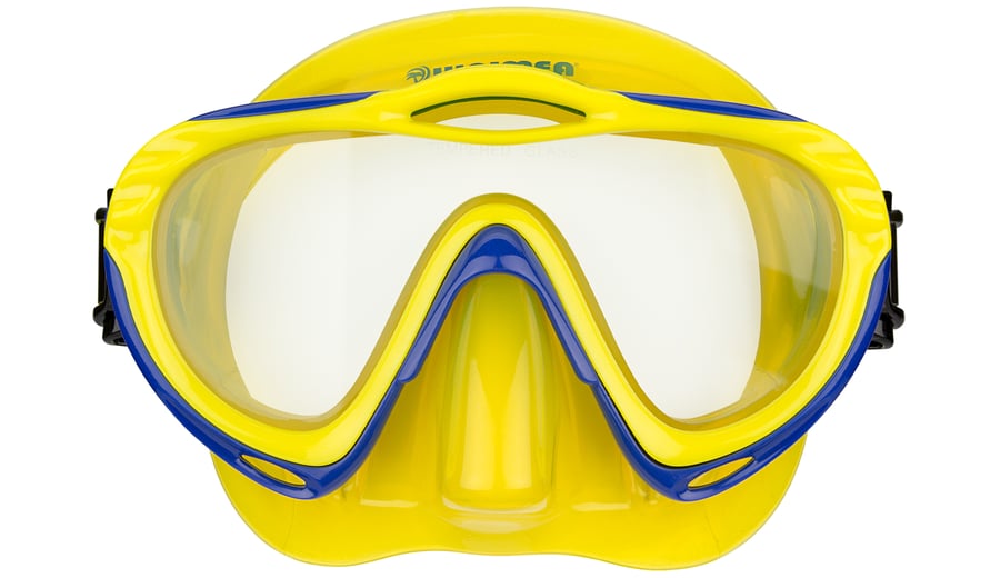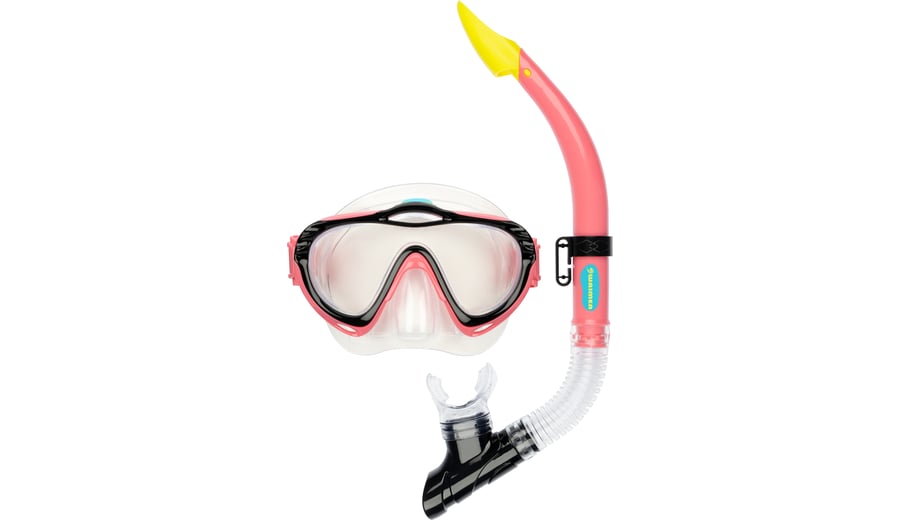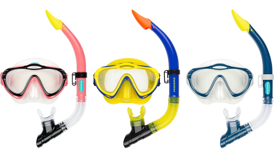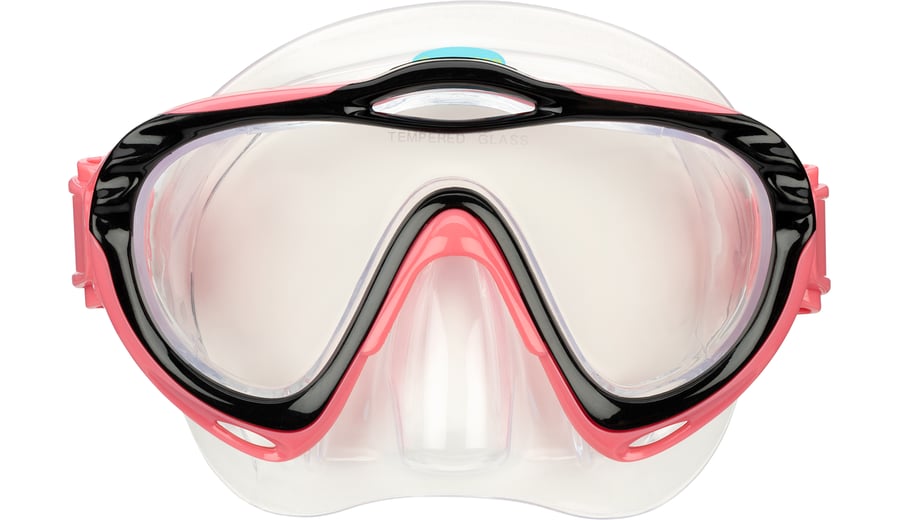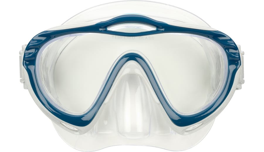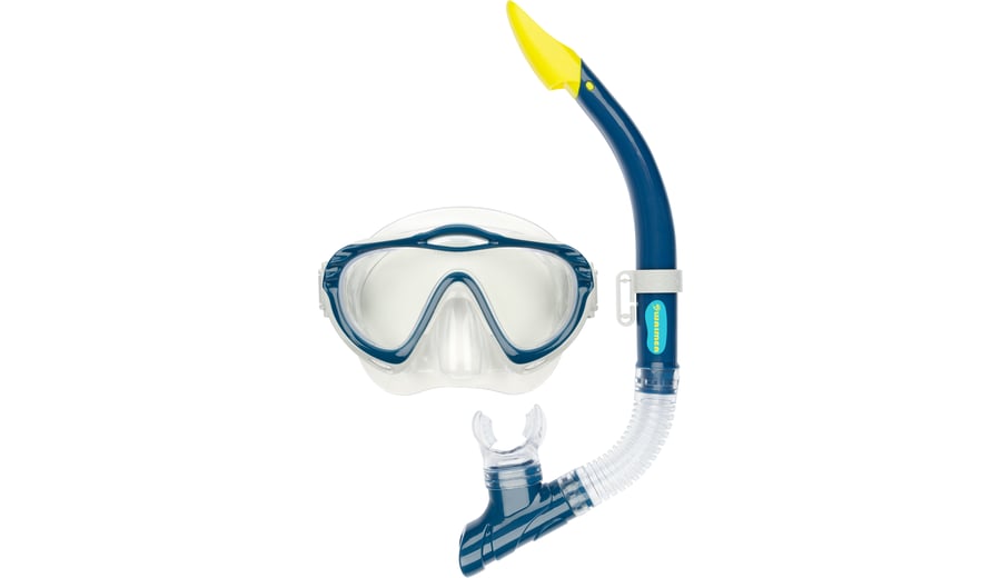 | Characteristics | • tempered glass lens • polycarbonate frame • PVC mask and adjustable strap • PVC mouthpiece and air tube, including a flexible harmonica part for extra comfort • draining valve • safety outlet at top of the tube |
