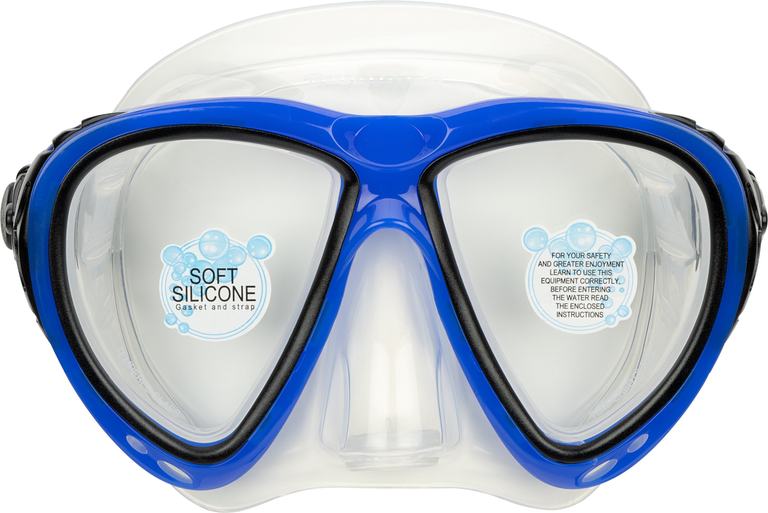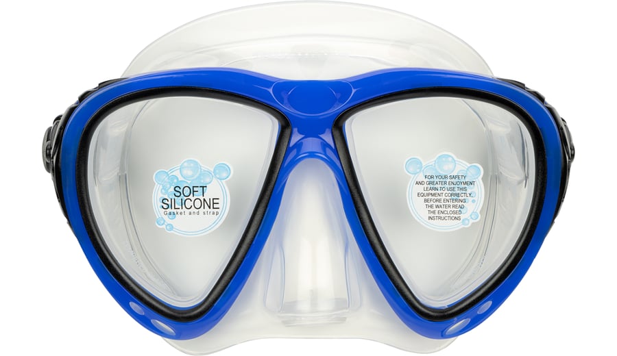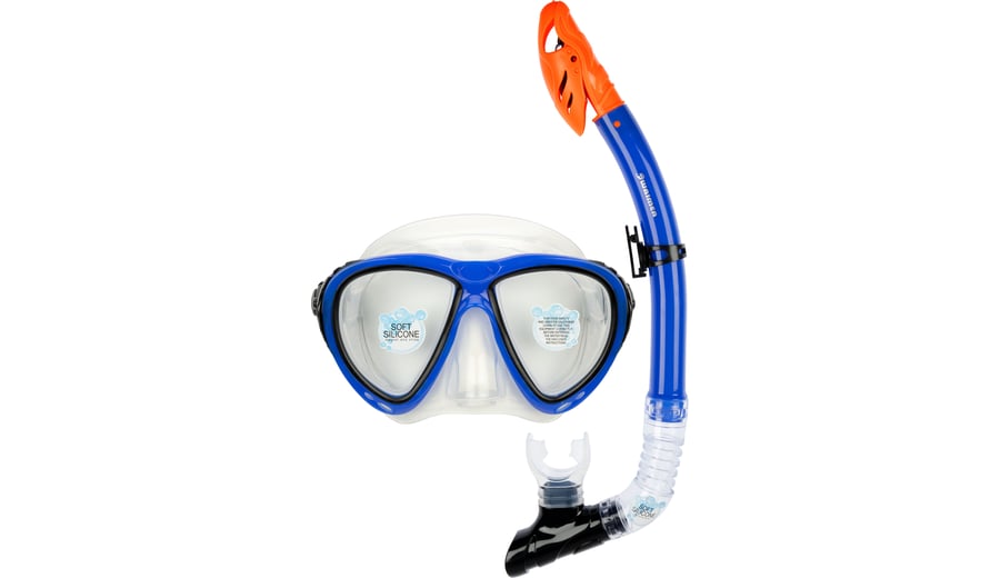 | Characteristics | • tempered glass lens • polycarbonate frame • silicone mask and adjustable strap • PVC air tube and silicone mouthpiece • draining valve • tube with pivot dry-top |