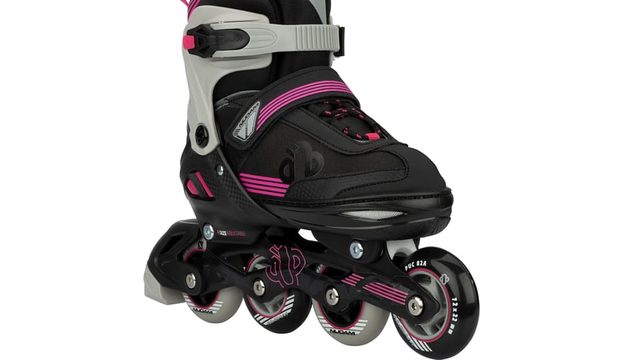 | Characteristics | • 2 configurations possible: Inline skates or ice skates • Size-adjustable to 4 sizes by means of push button on the heel • Design: Semi-softboot made of shockabsorbing TPE and PU leather/polyester mesh • Fasteners: Quick-lock fastening with PU leather powerstrap and laces • Inner shoe: Comfortable polyester shoe, with a lining of EVA and pearl foam • Chassis: High-impact PP blade holder and aluminium skate chassis • Blades (ice skate): Carbon steel speed hockey blades • Blades have been pre-sharpened • Wheels (inlines): PU casted 82A, size 29-32: 64 x 22 mm, sizes 33-36 and 37-40: 72 x 22 mm • Bearings (inlines): Sealed ABEC 5 half-chrome • Brake (inlines): TPR 82A • Tools: 2 Allen keys included |
