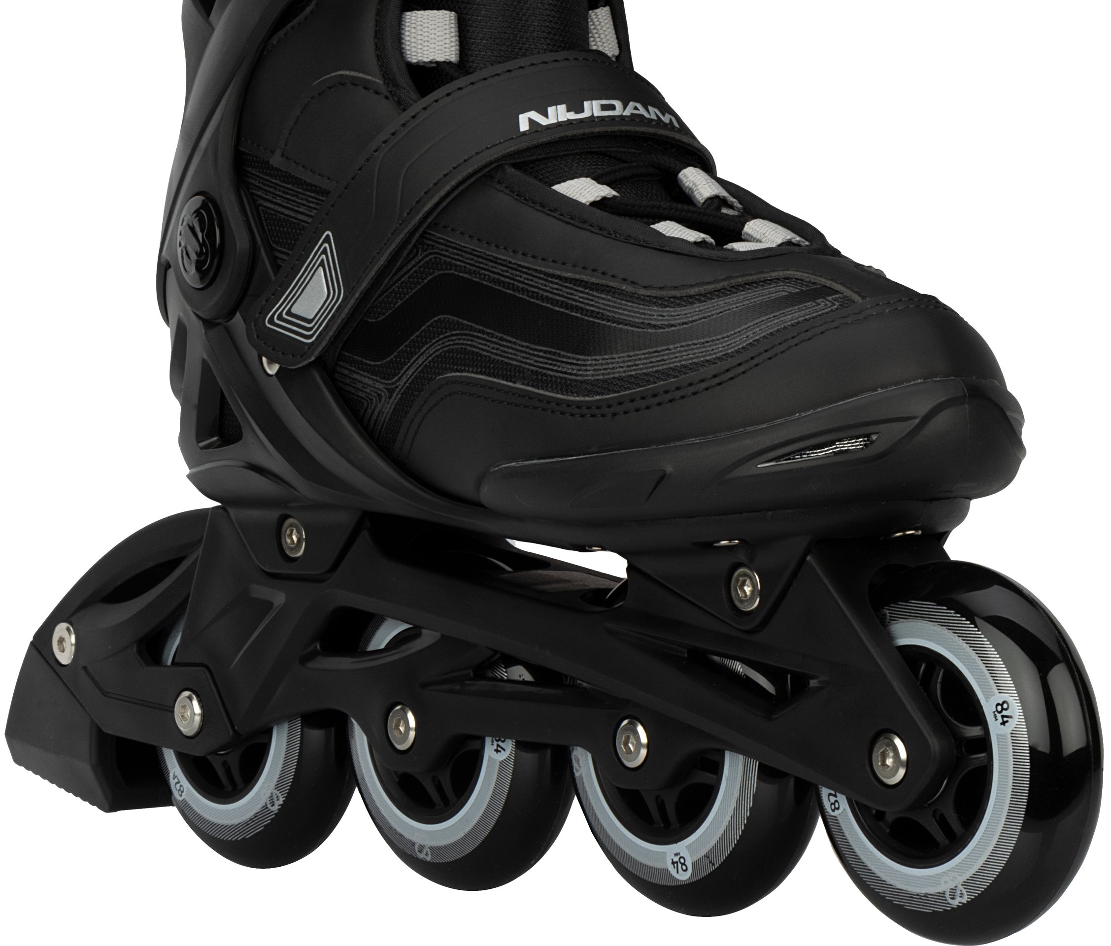 | Characteristics | • comfortable, semi-softboot inline skate • Quick-lock fastening with PU leather powerstrap and laces • Shoe: polyester mesh with PU nubuck, brushed polyester lining, comfortable padding • Chassis: high-impact PP • Wheels: PU casted 82A, 84 x 24 mm • Bearings: sealed ABEC 7 • Brake: TPR 85A • Tools: 2 Allen keys included |
