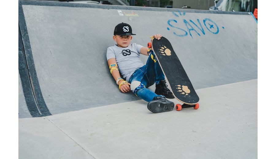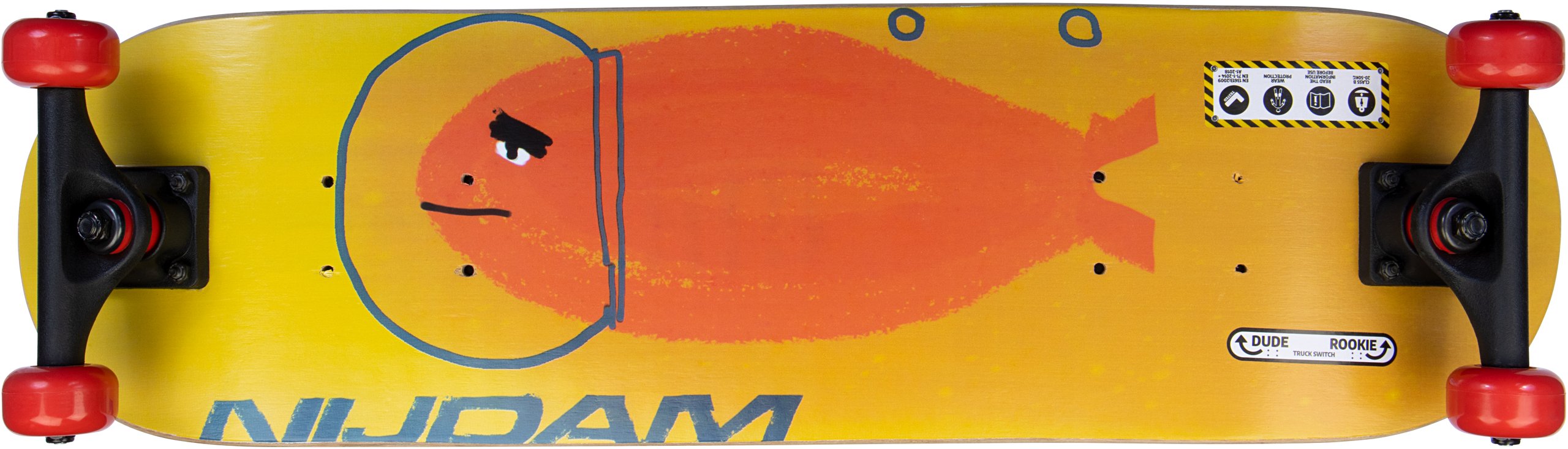| Characteristics | • With pre-drilled holes for different placement of trucks for different skill levels • Board: 9-ply maple with print on underside, black 80AB griptape, 71 x 20 cm • Trucks: 5 inch synthetic heavy-duty trucks with PU bushings • Wheels: PU injection 92A, 50 x 30 mm • Bearings: sealed ABEC 5 carbon • Maximum load 50 kg (class B) |