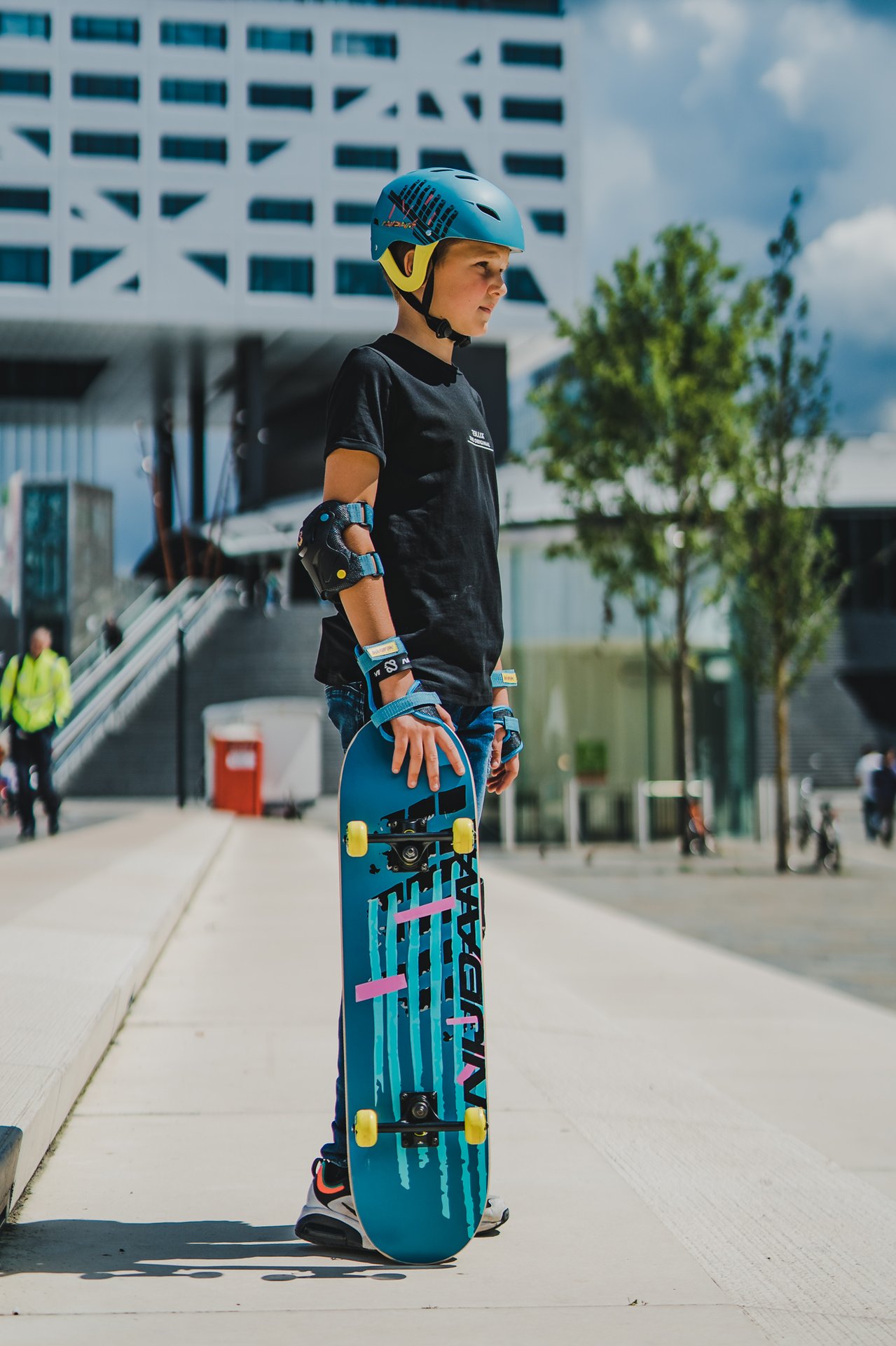 | Characteristics | • Board: double kicktail, concave, 8-ply maple with print on underside, black griptape, 79 x 20 cm • Trucks: 5 inch heavy-duty aluminium, matt black powder coating, PU bushings • Wheels: PU injection 90A, 52 x 32 mm • Bearings: sealed ABEC 5 half-chrome • Maximum load 100 kg |