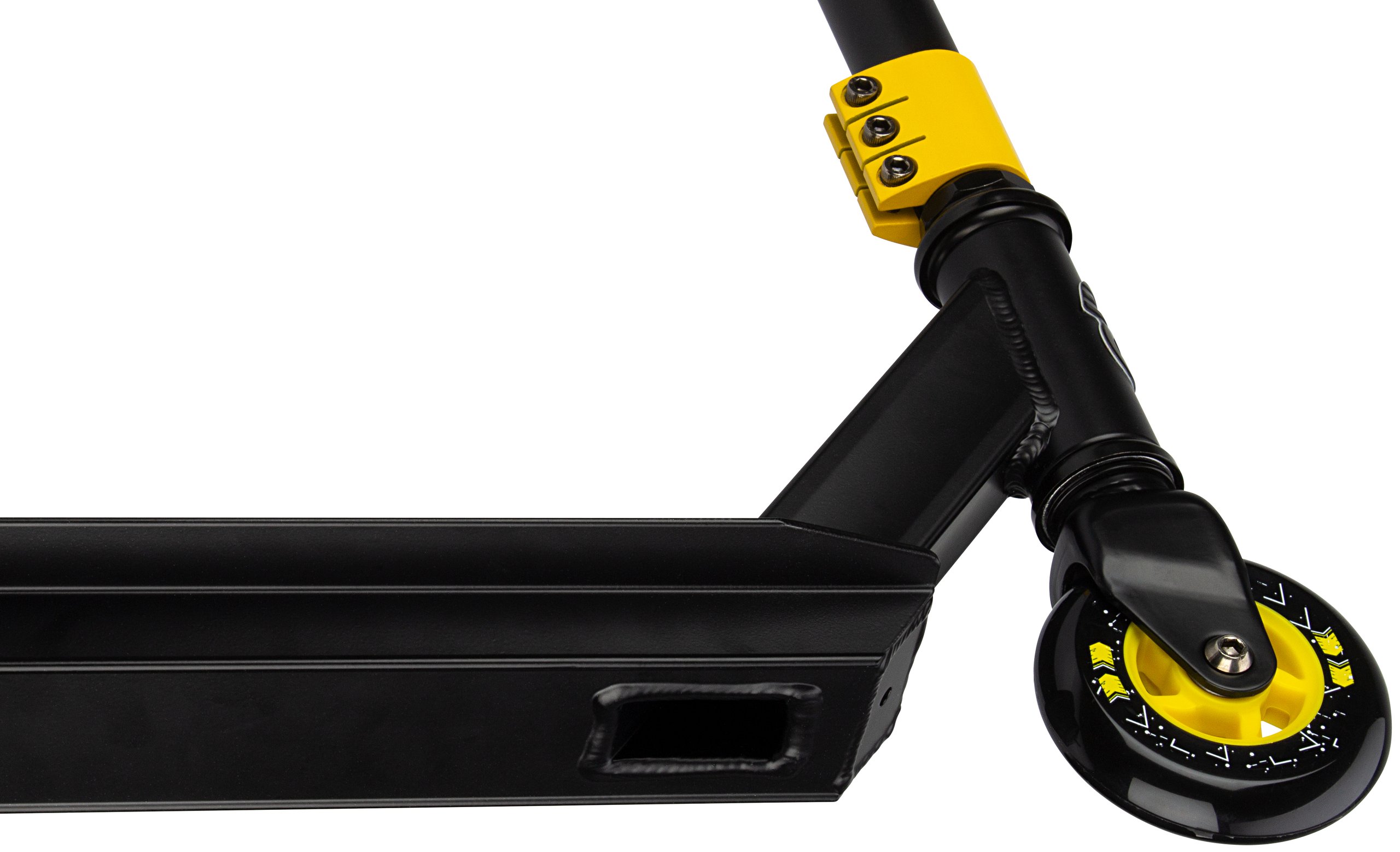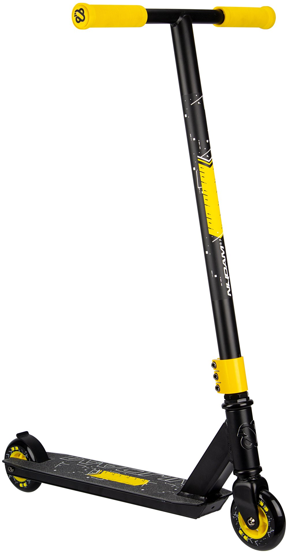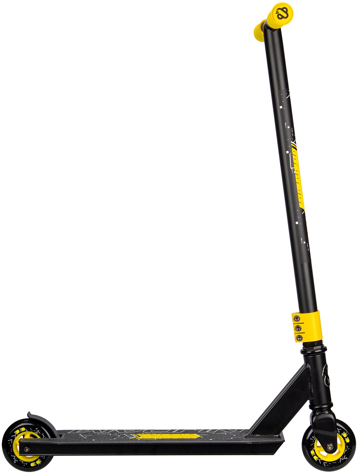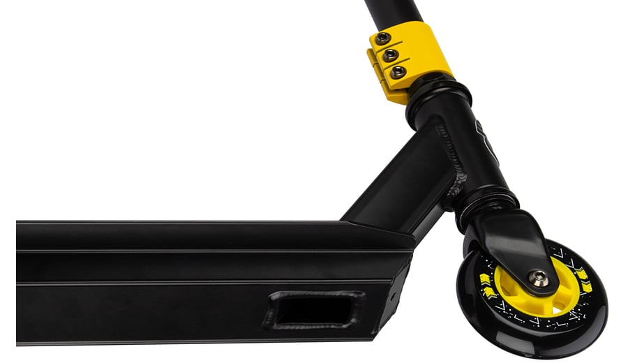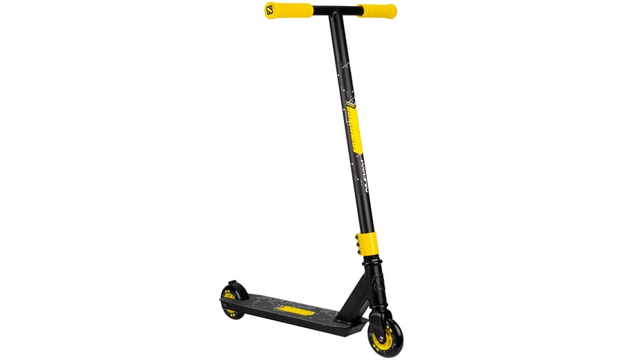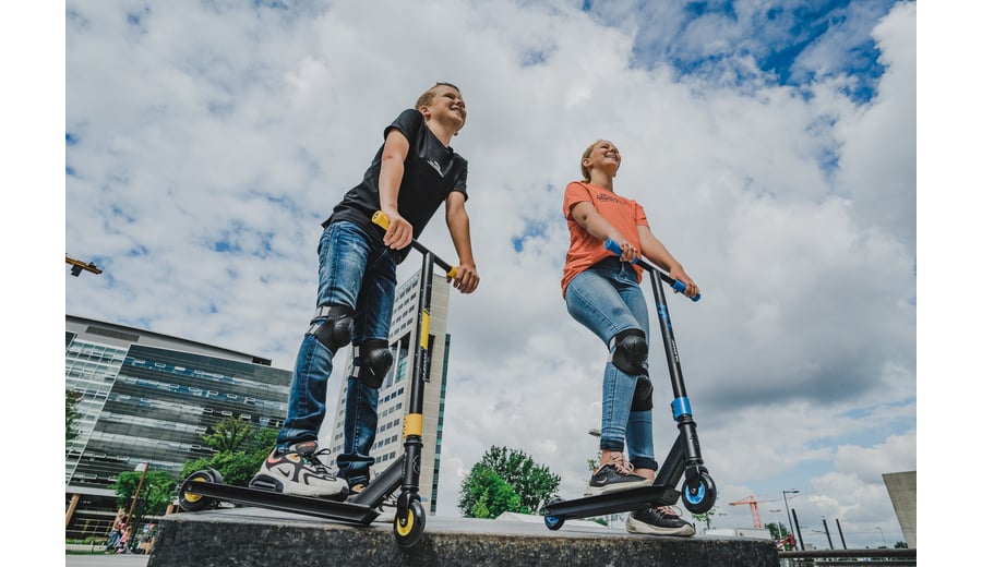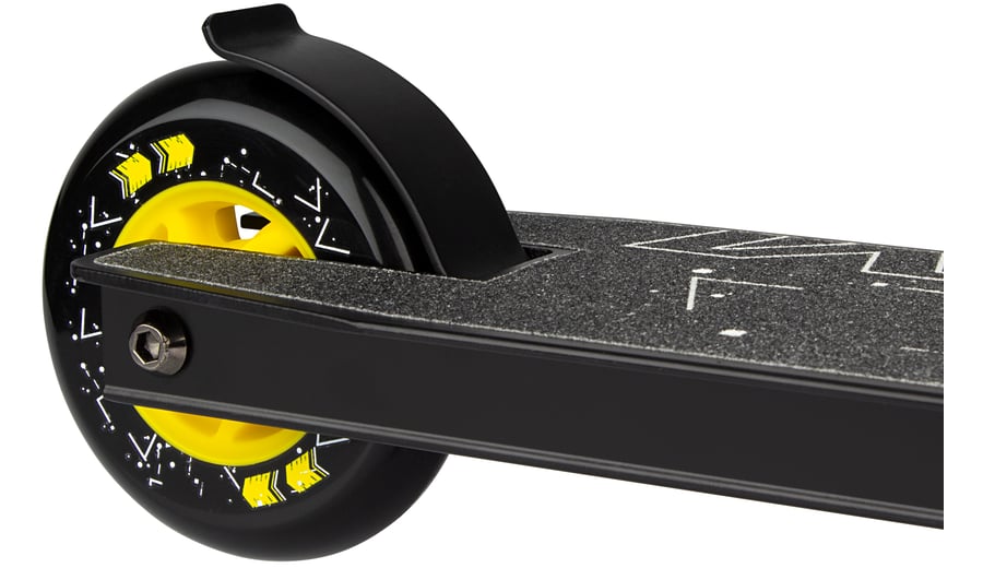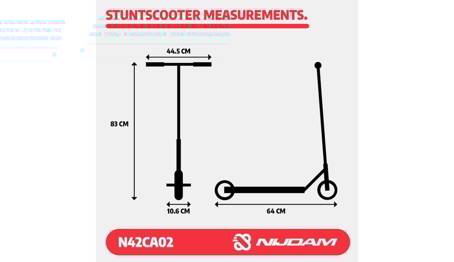 | Characteristics | • Strong construction - made for doing tricks • Handlebar: fixed height steel T-bar with rubber grips 83 x 44.5 cm • Deck: aluminium with grip tape surface, 48 x 10.6 cm • Wheels: PU casted 85A, 100 x 24 mm • Bearings: sealed ABEC 5 chrome • Brake: rear wheel steel flex brake • Tools: 2 Allen keys included |