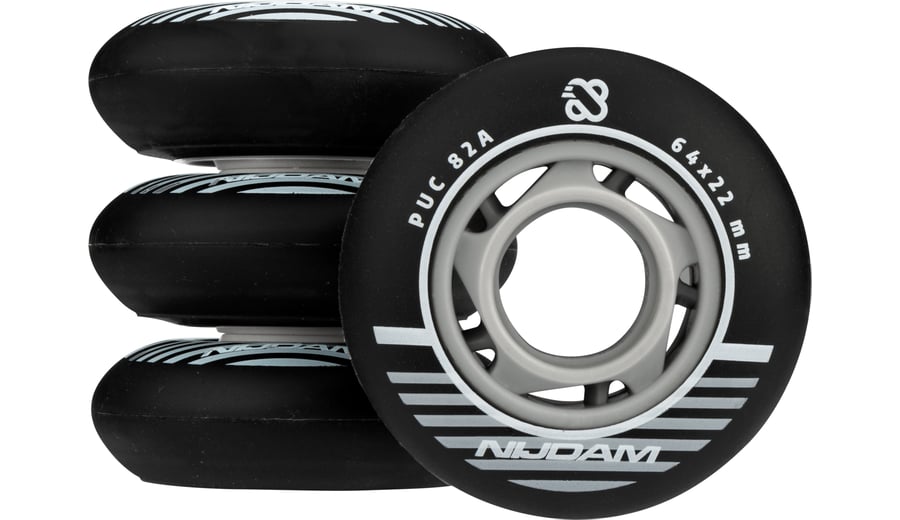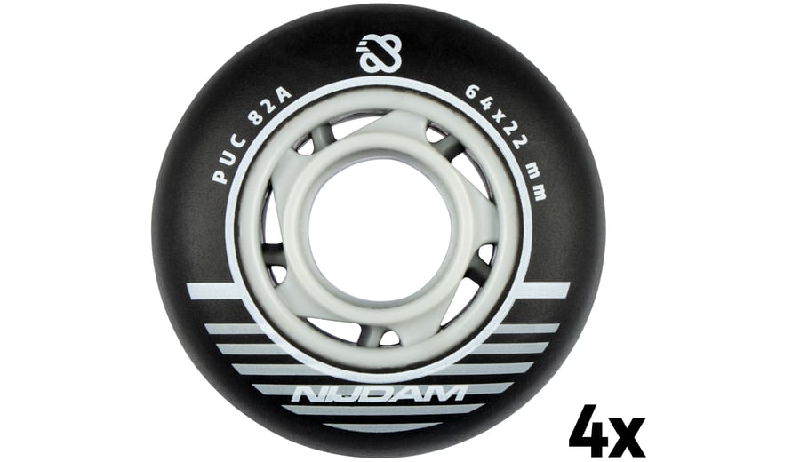 Inline Skate Wheel Set - 64x24 mm - 4pcs - Black
