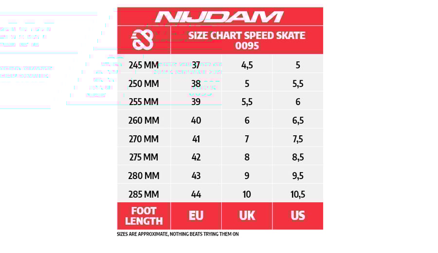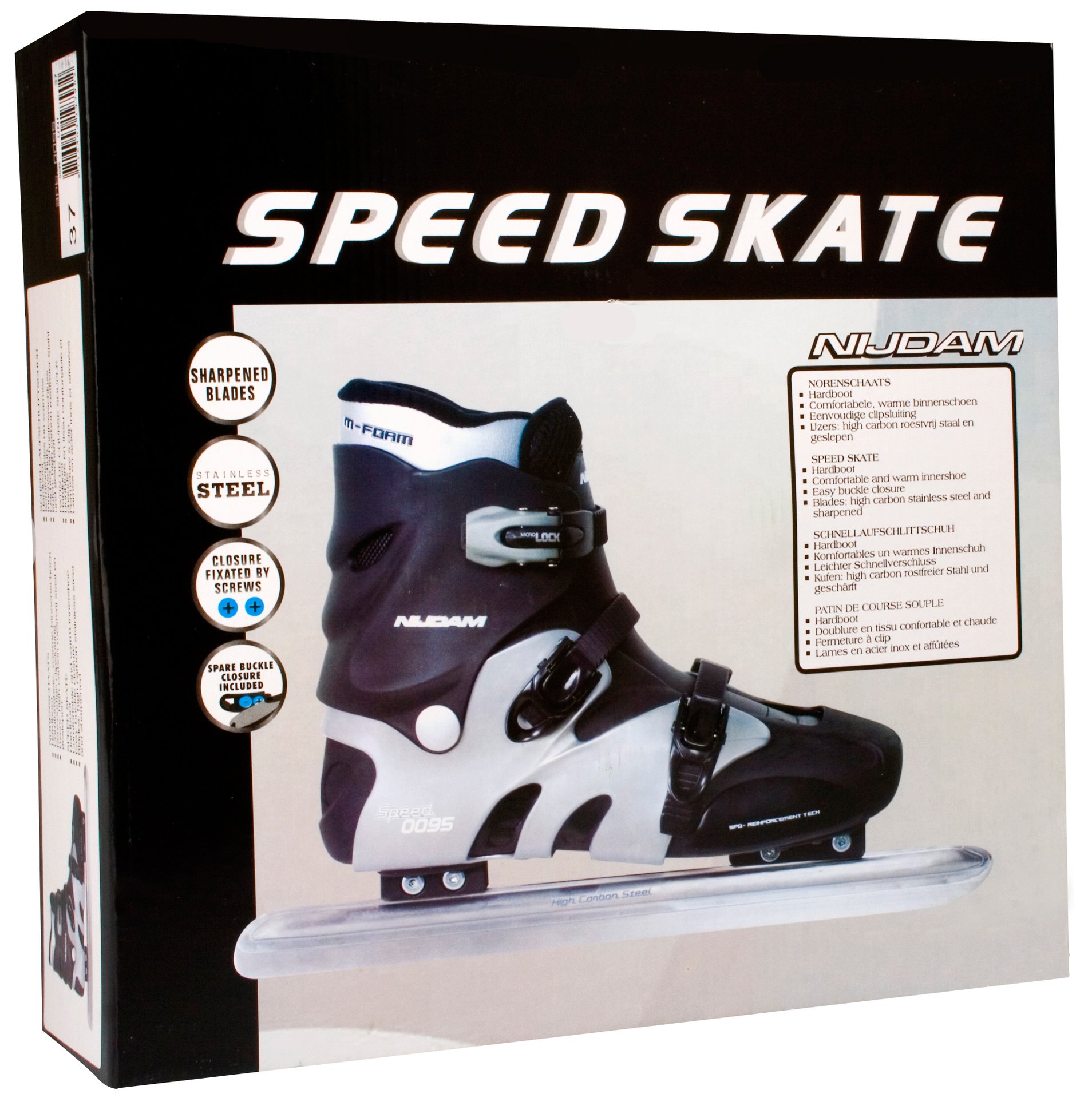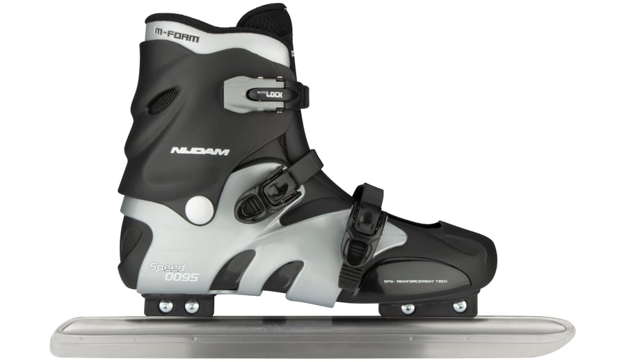 | Kenmerken | • Lage norenschaats • Design: 3-delige TPE hardboot schoen • Binnenschoen: Uitneembare zachte polyester binnenschoen met harde tong • Sluitingen: 3 dubbele snelsluitingen, bovenste sluiting voorzien van slot • Chassis: Lichtgewicht aluminium schaatsbuis • IJzers: High carbon norenschaatsijzers • Schaatsijzers zijn reeds voorgeslepen |
