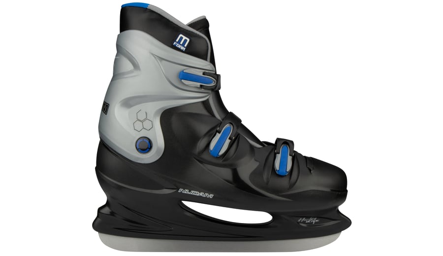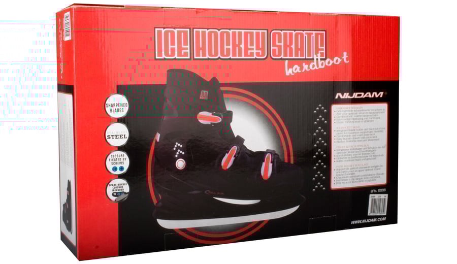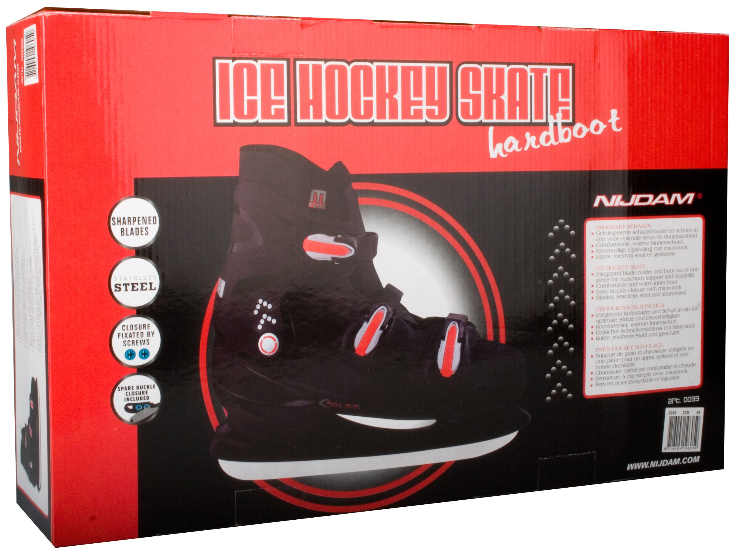 | Kenmerken | • 2-delige TPE schalen ijshockeyschoen • 3x 2-delige snelsluiting met slot, bevestigd d.m.v. een eenvoudig te vervangen verschroefde verbinding • uitneembare polyester mesh binnenschoen met polyester voering • voorgevormde inlegzool • kleur (ZZR) bovenkant binnenschoen met kevlarlook strip • geïntegreerde schaatshouder met roestvrijstalen ijshockeyschaatsijzers • schaatsijzers zijn reeds voorgeslepen |