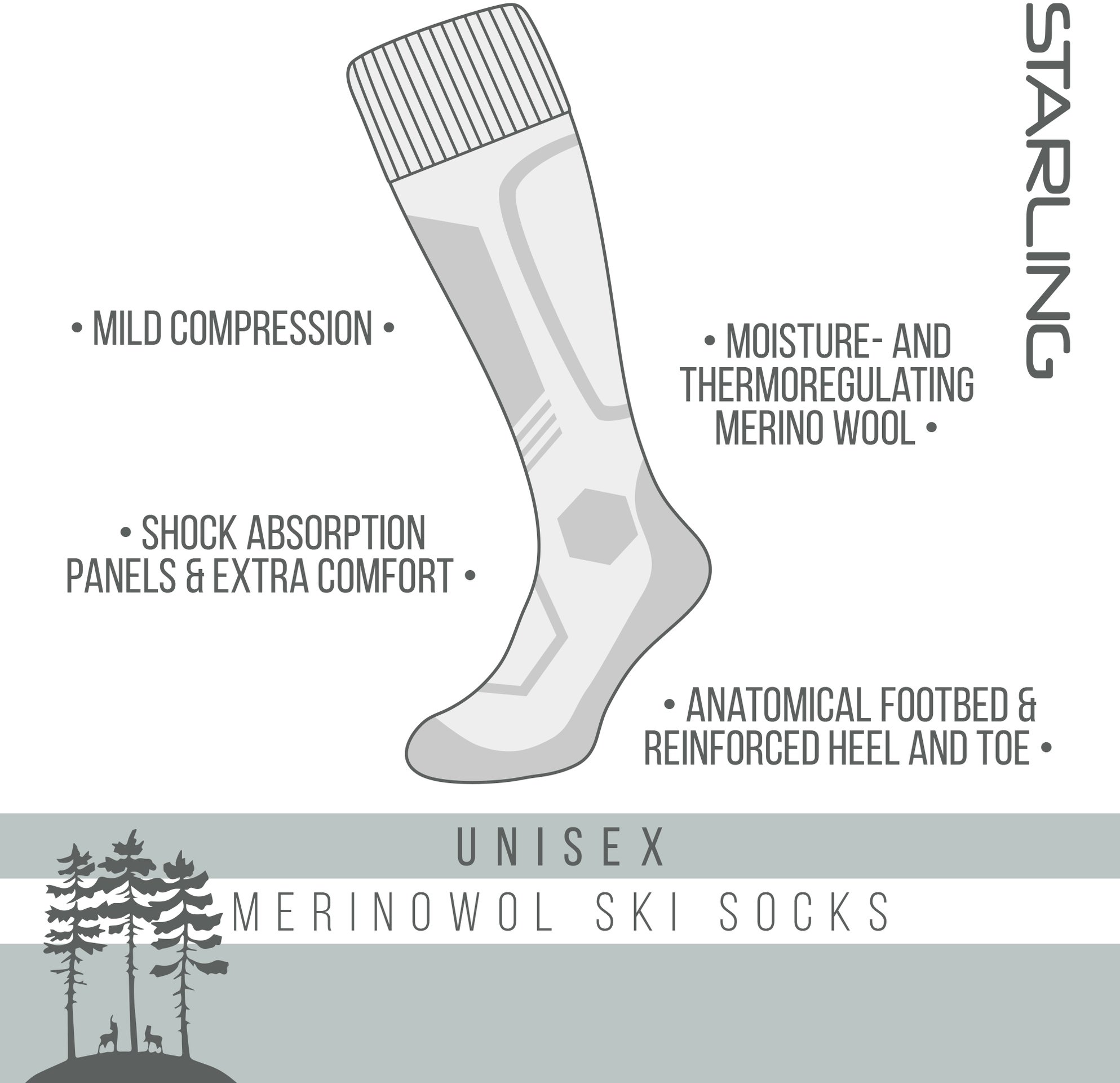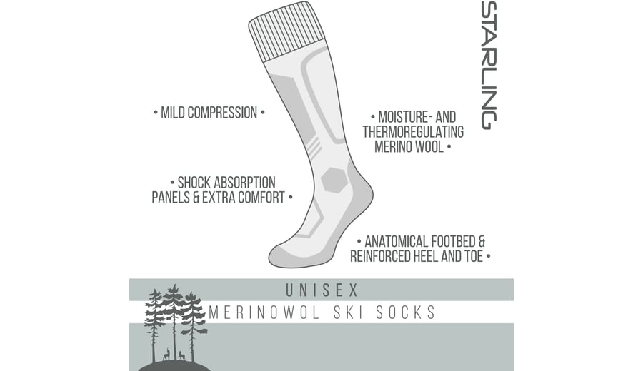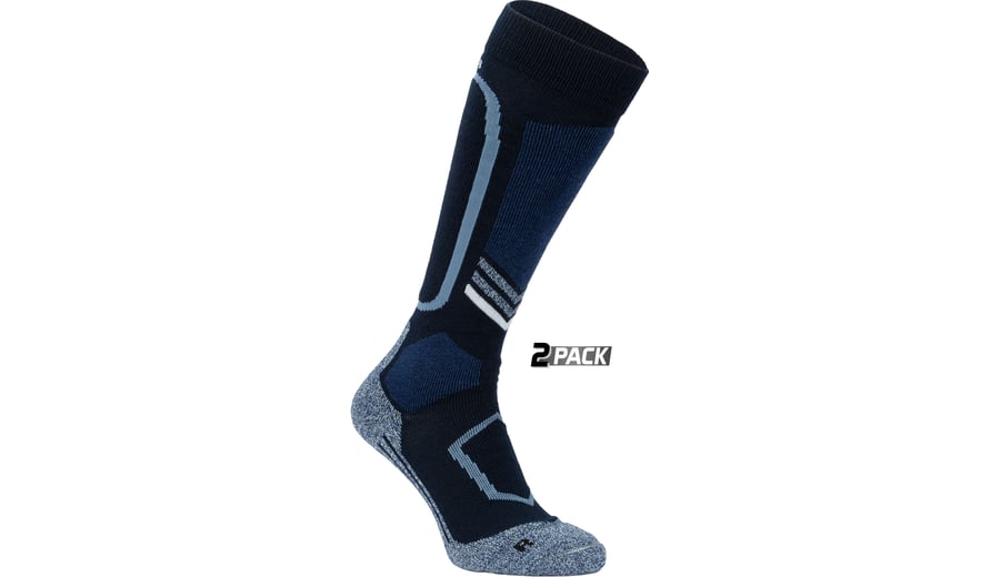 | Kenmerken | • 2 paar comfortabele, warme lang model skisok met merino wol met lichte compressie • lichte compressie voor minder vermoeide spieren • merinowol zorgt ervoor dat je warme, droge voeten houdt tijdens het skiën of snowboarden • verdikking op wreef, bij de enkel en scheenbeen voor schokabsorptie en om irritatie met je ski- of snowboardschoen te voorkomen • verstevigde met schokdemping gevoerde hak en teen voor het opvangen van de eerste schokken van het skiën • enkel en middenvoet ondersteuning voor optimale ondersteuning en voetvermoeidheid te voorkomen • plat geweven teennaad die je niet voelt zitten • gedeeltelijk badstof binnenkant voor extra zachtheid |