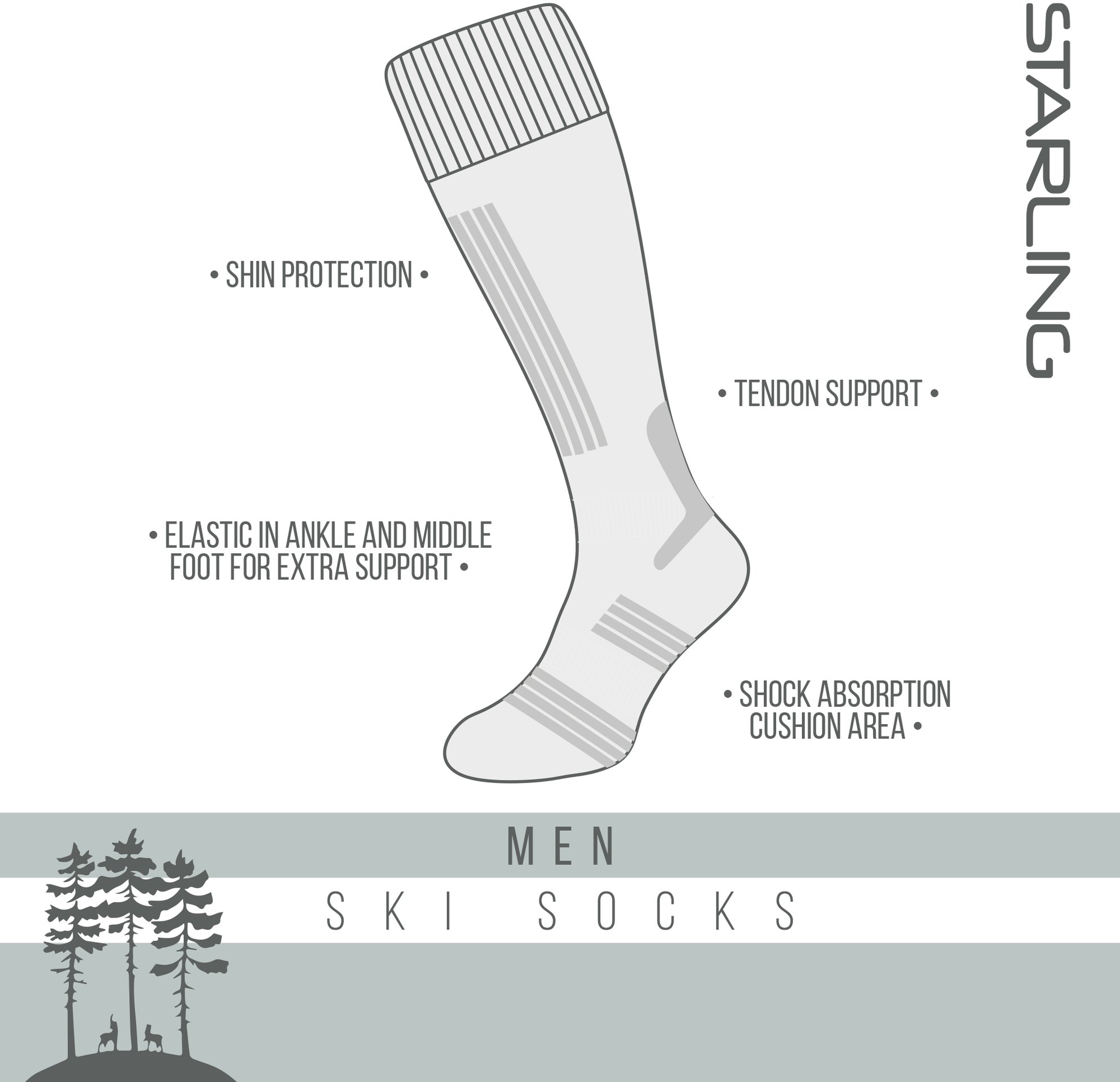 | Kenmerken | • 2 paar comfortabele, anatomisch voorgevormd, lang model skisok voor heren • vochtregulerende materialen zodat je warme, droge voeten houdt tijdens het skiën of snowboarden • elastisch, verticaal geweven wreefband om de sok perfect om je voet aan te laten sluiten • verdikking op scheenbeen om irritatie met je ski- of snowboardschoen te voorkomen • verstevigde met schokdemping gevoerde hak en teen voor het opvangen van de eerste schokken van het skiën • enkel en middenvoet ondersteuning voor optimale ondersteuning en voetvermoeidheid te voorkomen • plat geweven teennaad die je niet voelt zitten • gedeeltelijk badstof binnenkant voor extra zachtheid |