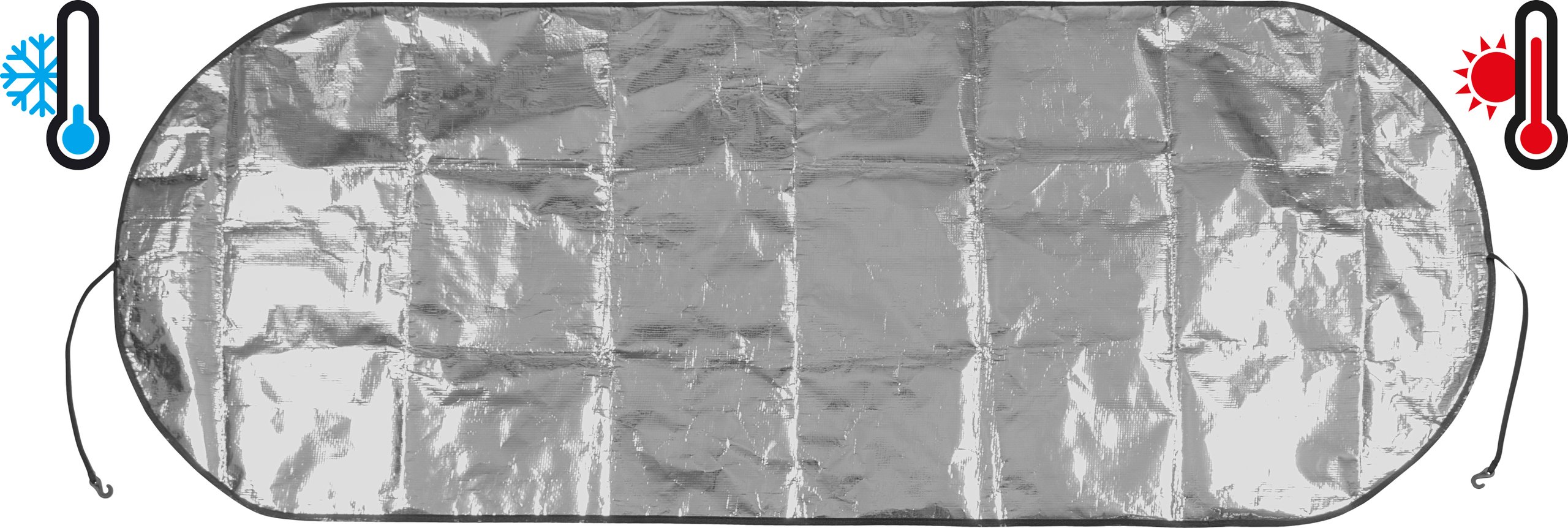 | Kenmerken | • anti-vorst/zonnescherm van geweven PE • zilverfolie 120 g/m2 aan bovenzijde • non-woven band rondom • twee elastieken bandjes met clips om scherm vast te maken • afmeting scherm ca. 180 x 70 cm • pakmaat ca. 24 x 24 cm • dikte ca. 0.5 mm |