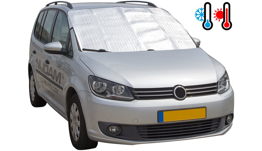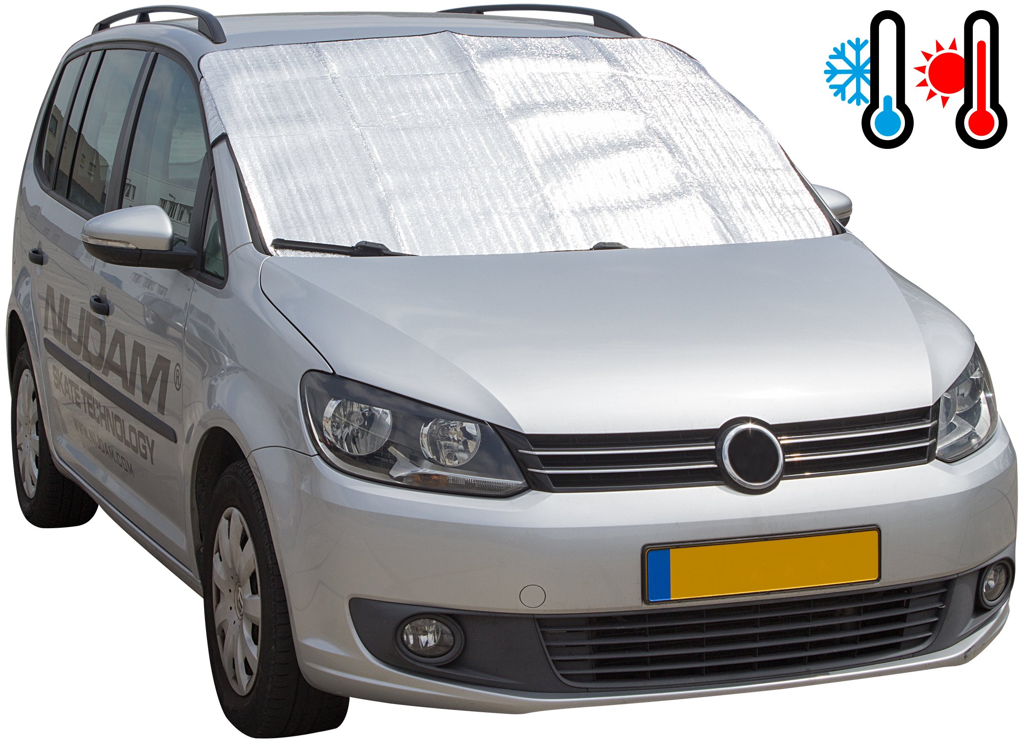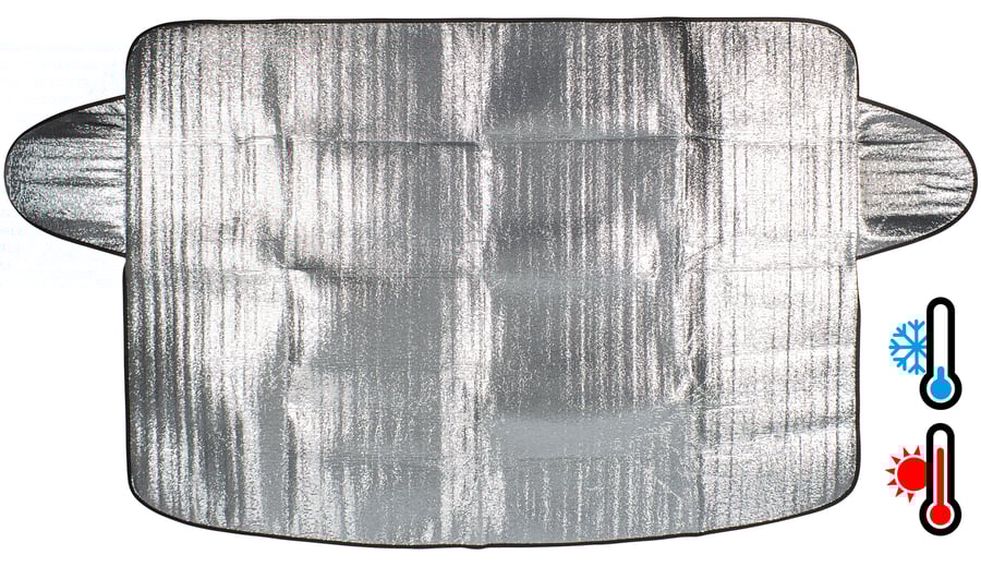 | Kenmerken | • aluminiumfolie met EPE vulling • geweven band rondom • 2 flappen aan de zijkant om tussen de autodeuren te klemmen • dikte ca. 1.9 mm • afmeting scherm ca. 143 x 105 cm • afmeting flappen ca. 31 x 25 cm |