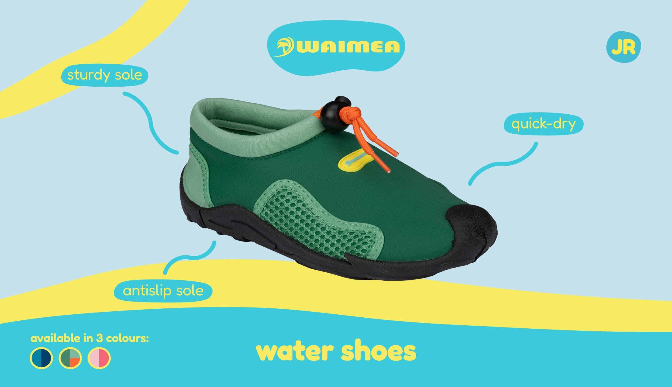 | Kenmerken | • comfortabele waterschoenen voor kinderen • TPR zool met antislip • bovenzijde van neopreen en mesh • koord met stoppersluiting aan voorzijde |