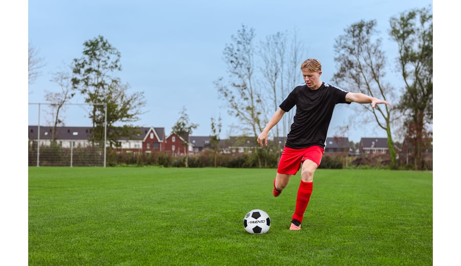 | Kenmerken | • rubberen buitenbal, "dimpled" zoals een golfbal • 32 panelen • butyl binnenbal, polyester wound • maat 5 • gewicht ca. 400 - 420 gram • niet opgepompt |