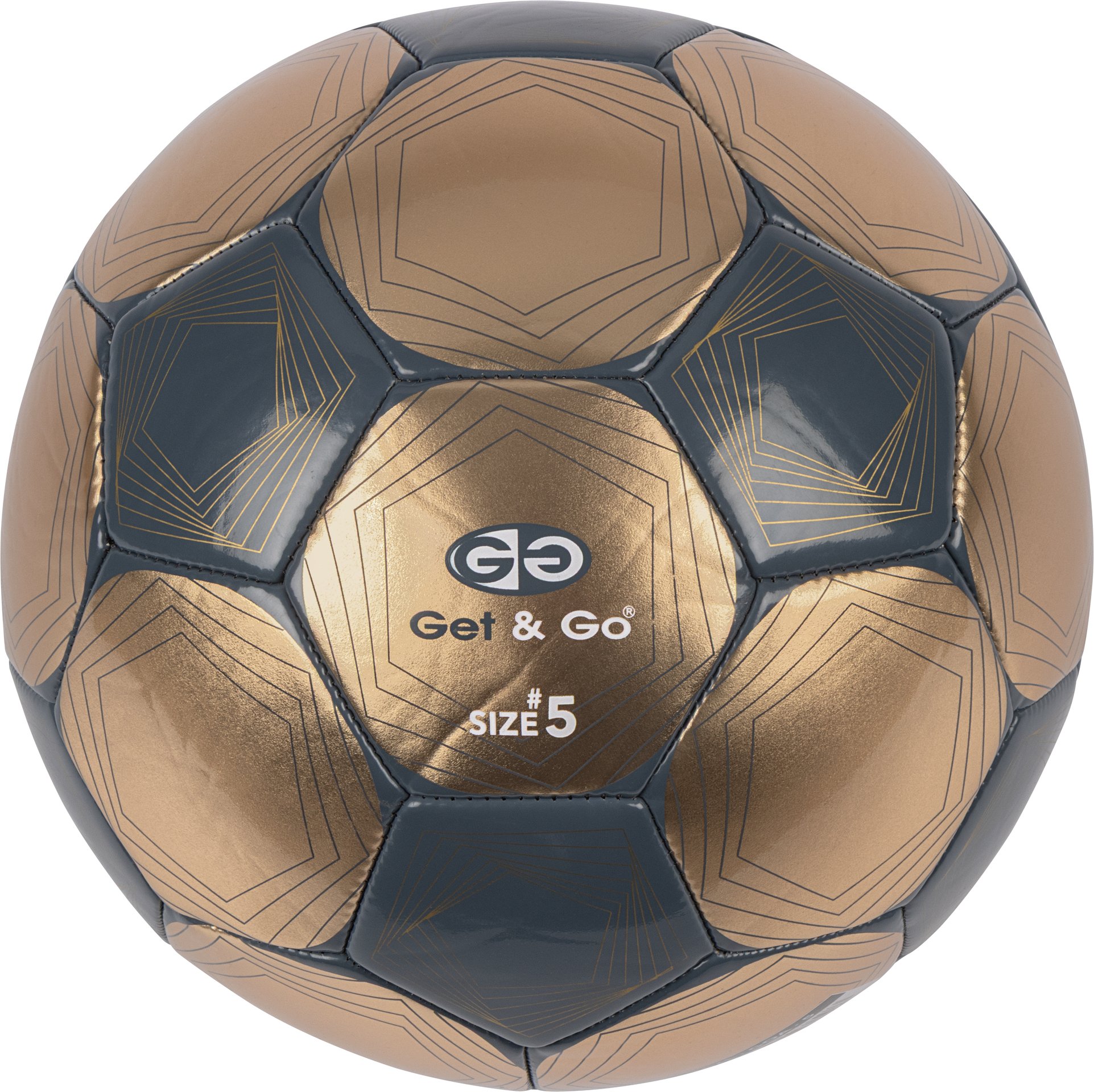| Kenmerken | • PVC shiny kunstleder met gouden finish, 2 laags • 32 panelen, machine genaaid • rubberen binnenbal met polyester wound voor extra duurzaamheid en stabiliteit • maat 5 • gewicht ca. 360-390 gram • niet opgepompt |