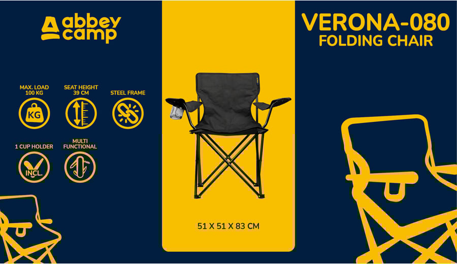 | Kenmerken | • multifunctionele, comfortabele vouwstoel • 600 x 300D polyester Oxford doek met PE coating, rondom afgewerkt met PP band • polyester mesh bekerhouder in één armleuning • stevig stalen frame met zwarte poedercoating • handig spinnenpoot-opvouwsysteem • afmeting ca. 51 x 51 x 82 cm • zithoogte ca. 39 cm • zitdiepte ca. 41 cm • geleverd in een handige polyester draagtas • maximale belastbaarheid: 100 kg |