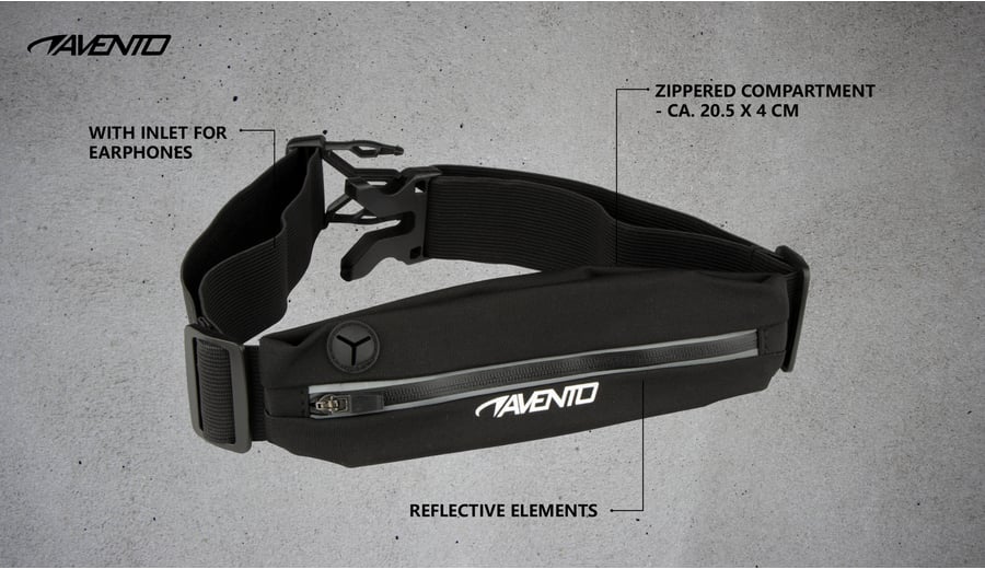 | Kenmerken | • verstelbare elastische heupgordel (maximaal bereik: ca. 84 cm) • lichtgewicht snelsluiting • lycra tasje met ritssluiting, afmeting ca. 20.5 x 4 cm • reflecterende accenten |
