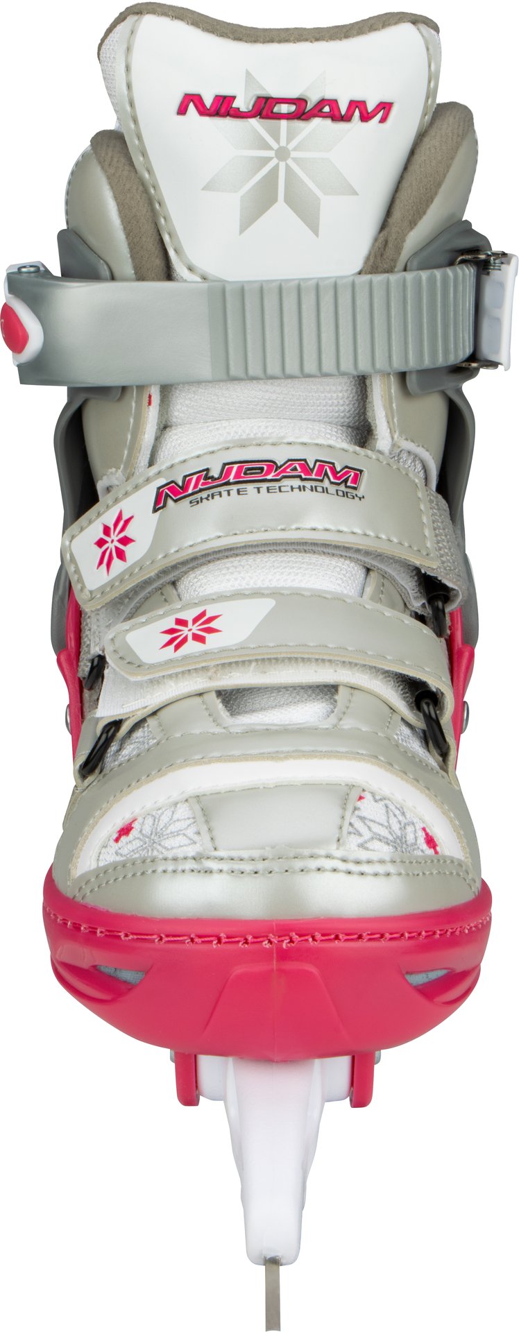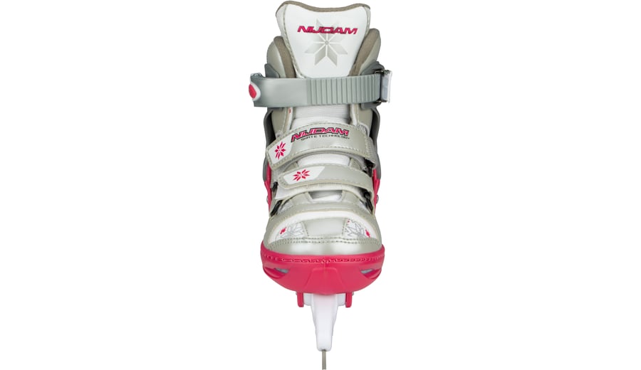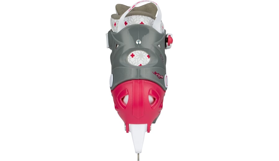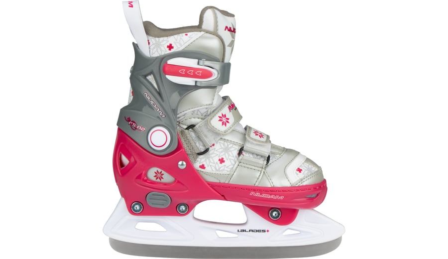 | Kenmerken | • polyester mesh/PU lederen semi-softboot • verstelbaar in 4 maten d.m.v. verstelknop aan de hiel • 2-delige snelsluiting met slot, bevestigd d.m.v. een eenvoudig te vervangen verschroefde verbinding • maat 29/32 met 2x klittenbandsluiting, maat 33/36 en 37/40, vetersluiting, wreefband met klittenband • TPE enkel-, hiel- en teenkap • synthetische schaatshouder met roestvrijstalen schaatsijzers • niet voorzien van kunstschaatspunt • schaatsijzers zijn reeds voorgeslepen |