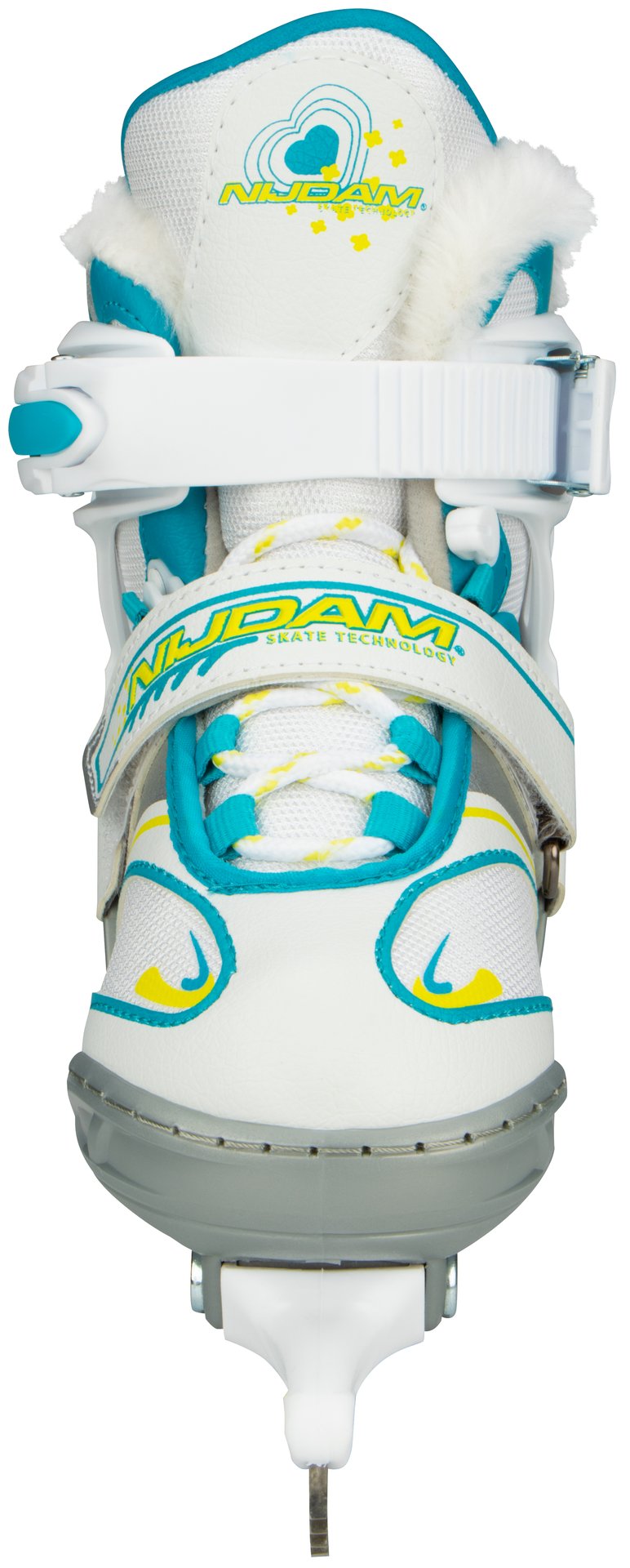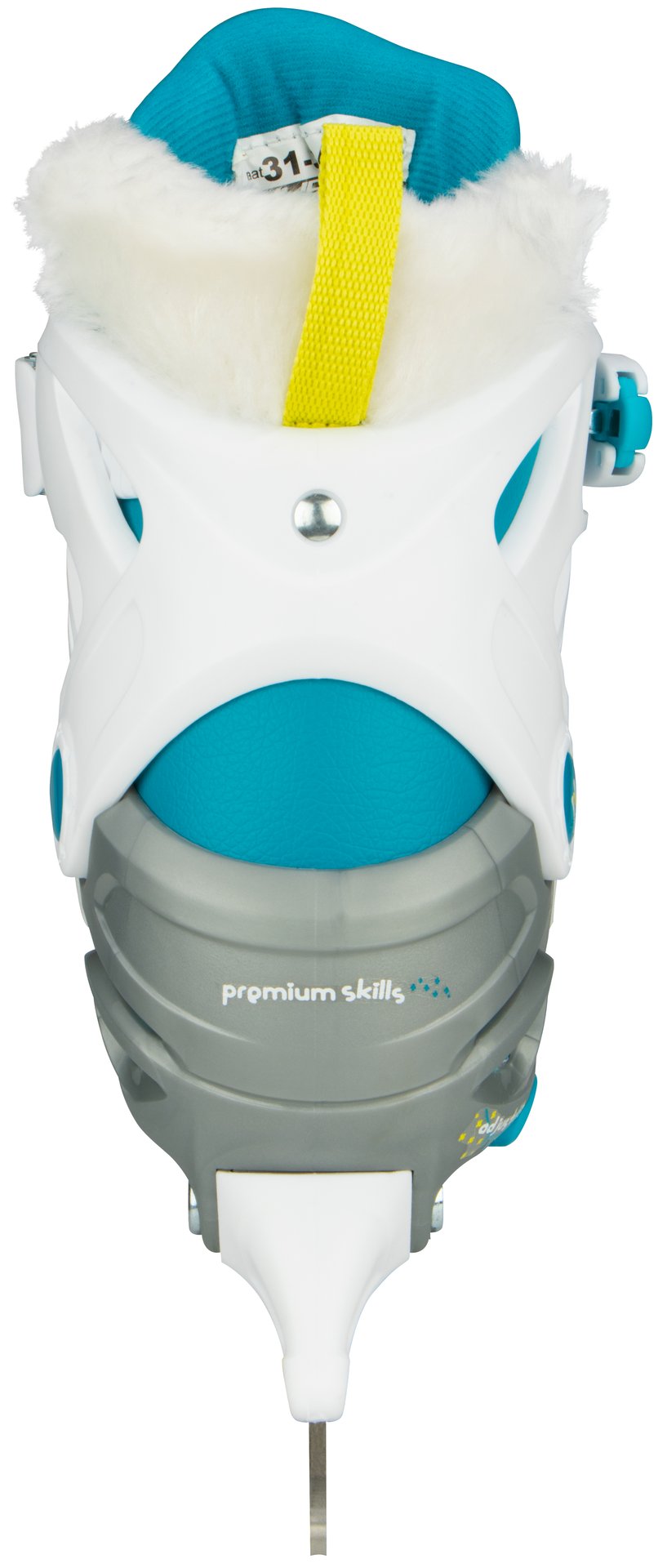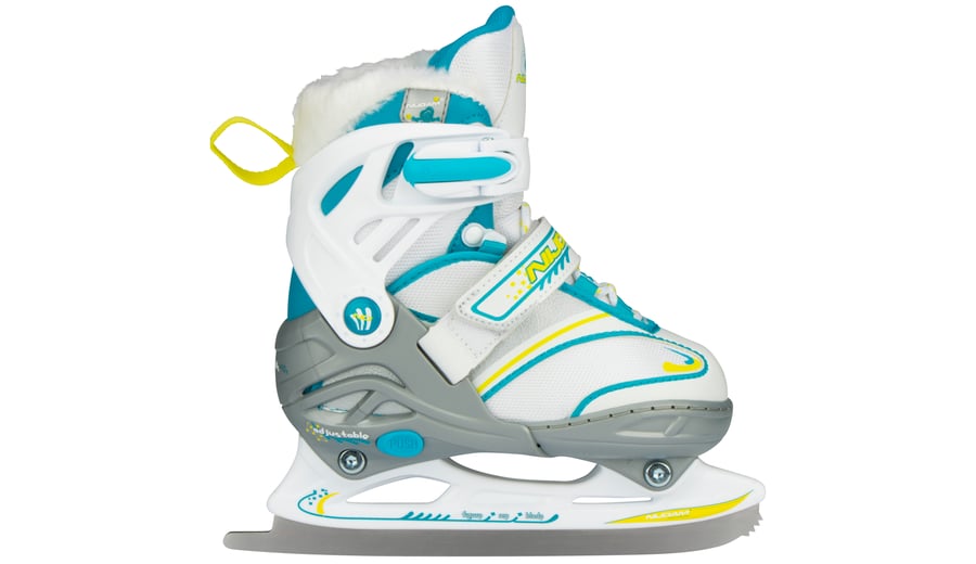 | Kenmerken | • polyamide mesh/kunstlederen semi softboot • verstelbaar in 4 maten d.m.v. drukknop aan de hiel • 2-delige snelsluiting met slot, bevestigd d.m.v. een eenvoudig te vervangen verschroefde verbinding • vetersluiting • wreefband met klittenband • TPE enkel-, hielkap, polyamide teenkap • imitatie bontrand aan de bovenzijde • synthetische schaatshouder met roestvrijstalen kunstschaatsijzers • Ijzers met kunstschaats tandjes • schaatsijzers zijn reeds voorgeslepen |
