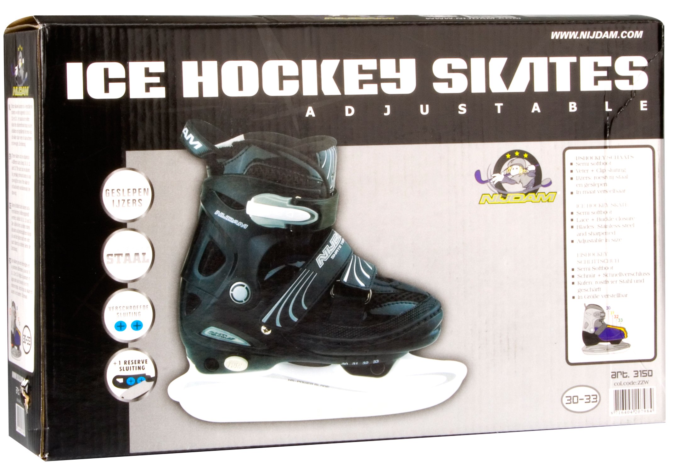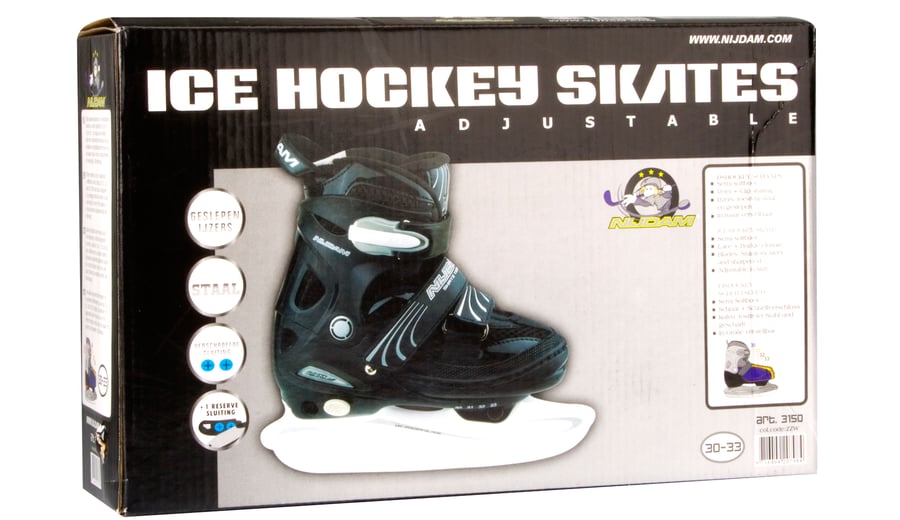 | Kenmerken | • polyester mesh/PVC lederen semi-softboot • verstelbaar in 4 maten d.m.v. drukknop aan de hiel • 2-delige snelsluiting met slot • maat 30/33 met 2x klittenbandsluiting, maat 34/37 en 38/41 met vetersluiting en wreefband met klittenband • TPE enkel-, hiel- en teenkap • synthetische schaatshouder met roestvrijstalen ijshockeyschaatsijzers • schaatsijzers zijn reeds voorgeslepen |