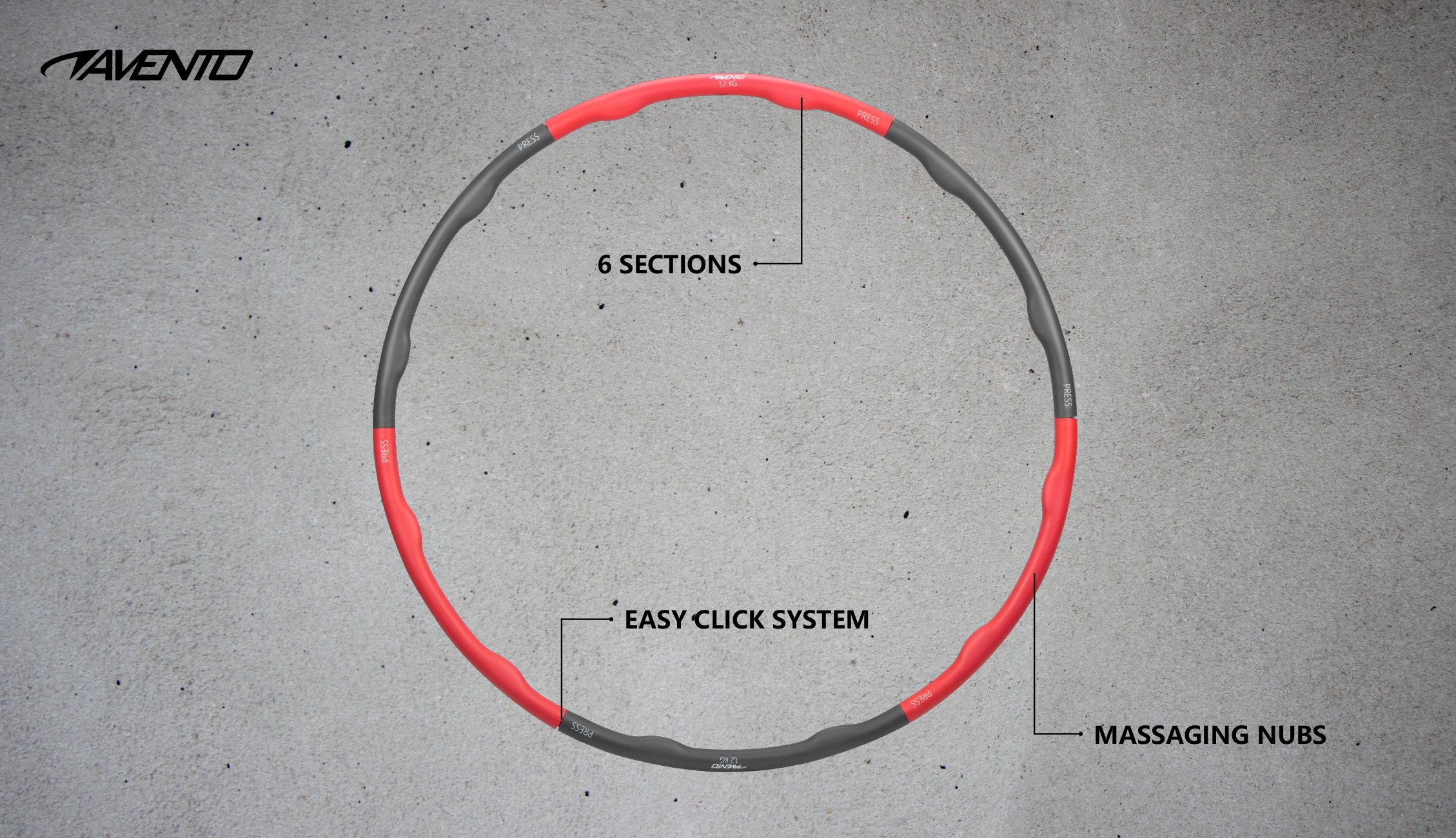 | Kenmerken | • 6-delige, versterkte kunststof hoepel met foam cover, diameter 100 cm • masserende noppen • diameter buis ca. 3.5 cm • dikte foam ca. 3.8 mm • verzwaard tot een gewicht van ca. 1.2 kg |