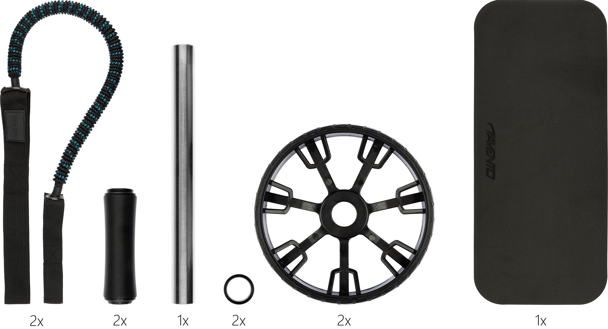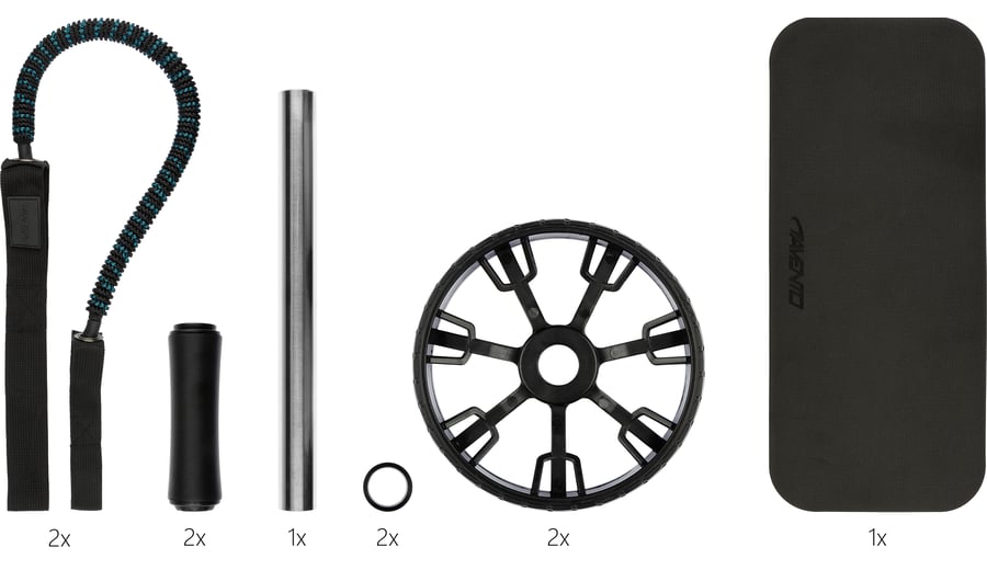 | Kenmerken | • veelzijdige buikspierwiel trainingsset • stevig dubbel PP wiel voor extra stabiliteit • PVC band met textuur om het wiel voor een goede grip • heavy duty stalen buis met foam handgrepen • TPE rubberen weerstandsbanden met textiele cover • PP banden met lus voor enkels/schoenen • TPE matje voor ondersteuning • diameter wiel 16 cm |