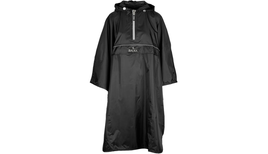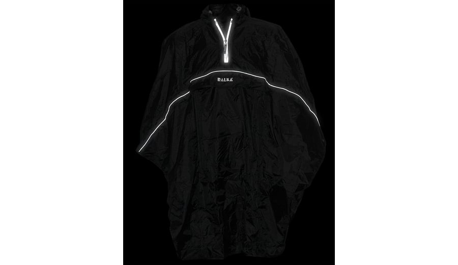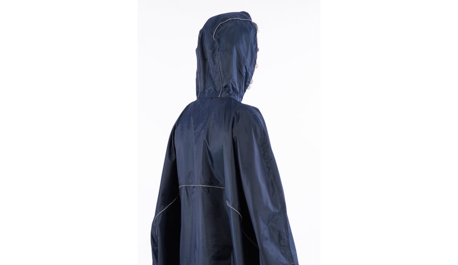 | Kenmerken | • PVC coating, 4000 mm waterdicht • getapete naden • korte ritssluiting • ruime zak met ritssluiting aan de voorzijde met overslag • reflecterende bies • capuchon met koord en koordstoppers • 2 banden binnenin ter bevestiging om het middel • poncho is opvouwbaar in de voorzak • kan d.m.v. de elastische banden met snelsluiting om het middel worden gedragen |